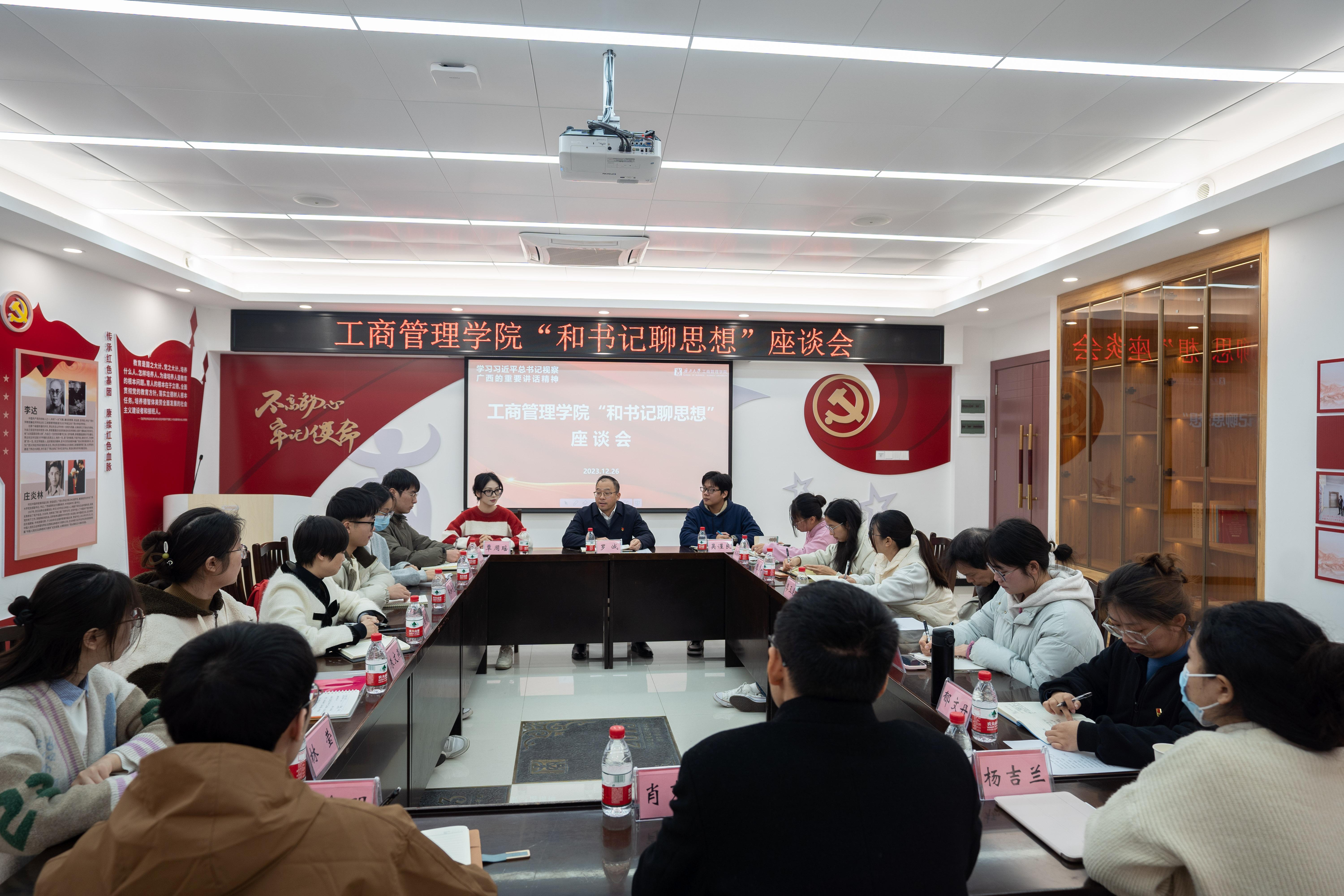 12月26日上午,我院在党员活动室开展“和书记聊思想”活动,深入学习领会习近平总书记视察广西的重要讲话精神。学院党委书记罗诚与13名学生干部代表面对面交流,了解同学们的理论学习感悟、思想动态、日常学习生活等方面情况。学院党委副书记肖克宁、团委书记马丽娟、组织员黄照温、辅导员郁文丹参与活动。