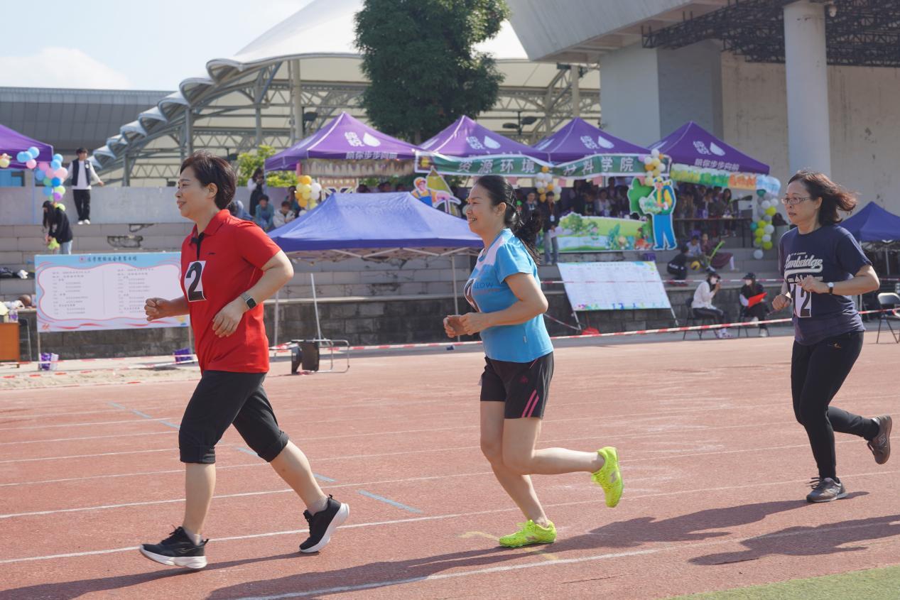 运动会上,老师们激情投入,挥汗如雨,矫健的身姿尽显运动风采。在径赛项目中,随着发令枪响,红色跑道上,他们如闪电般迸发力量、驰骋追风;在田赛项目中,他们轻盈的跳跃、力量的投掷在跳远和铅球的竞赛场上留下精彩的抛物线;在团体项目中,他们默契配合,相互协作,为学院争光添彩。