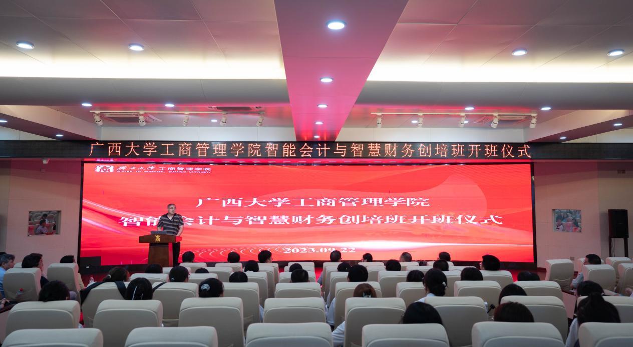 9月22日下午,我院在128报告厅举行首届智能会计与智慧财务创培班开班仪式。校党委常委、副校长宁旭初出席开班仪式并致辞。会计与财务金融系全体老师、2023级智会创培班全体学生参加了仪式。学院院长朱帮助主持仪式。