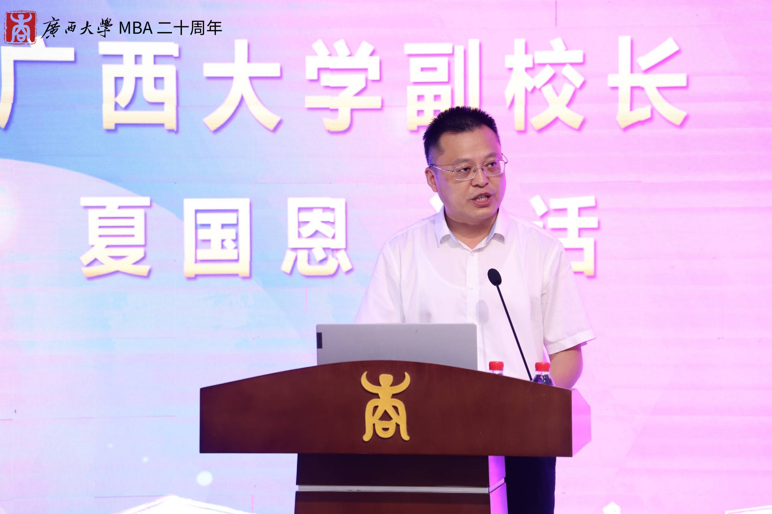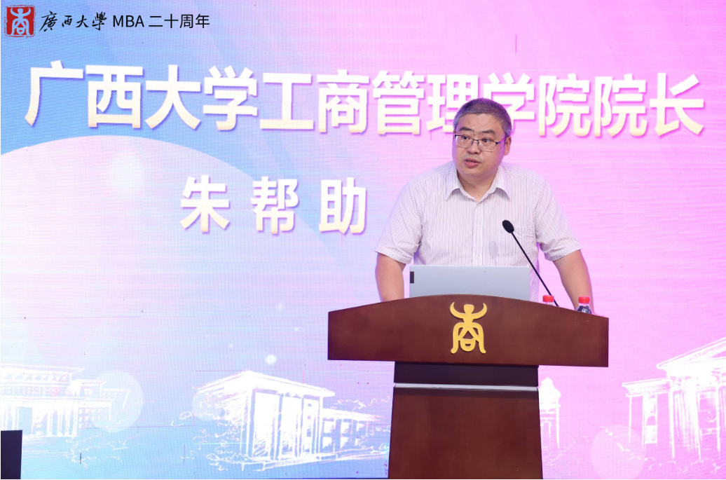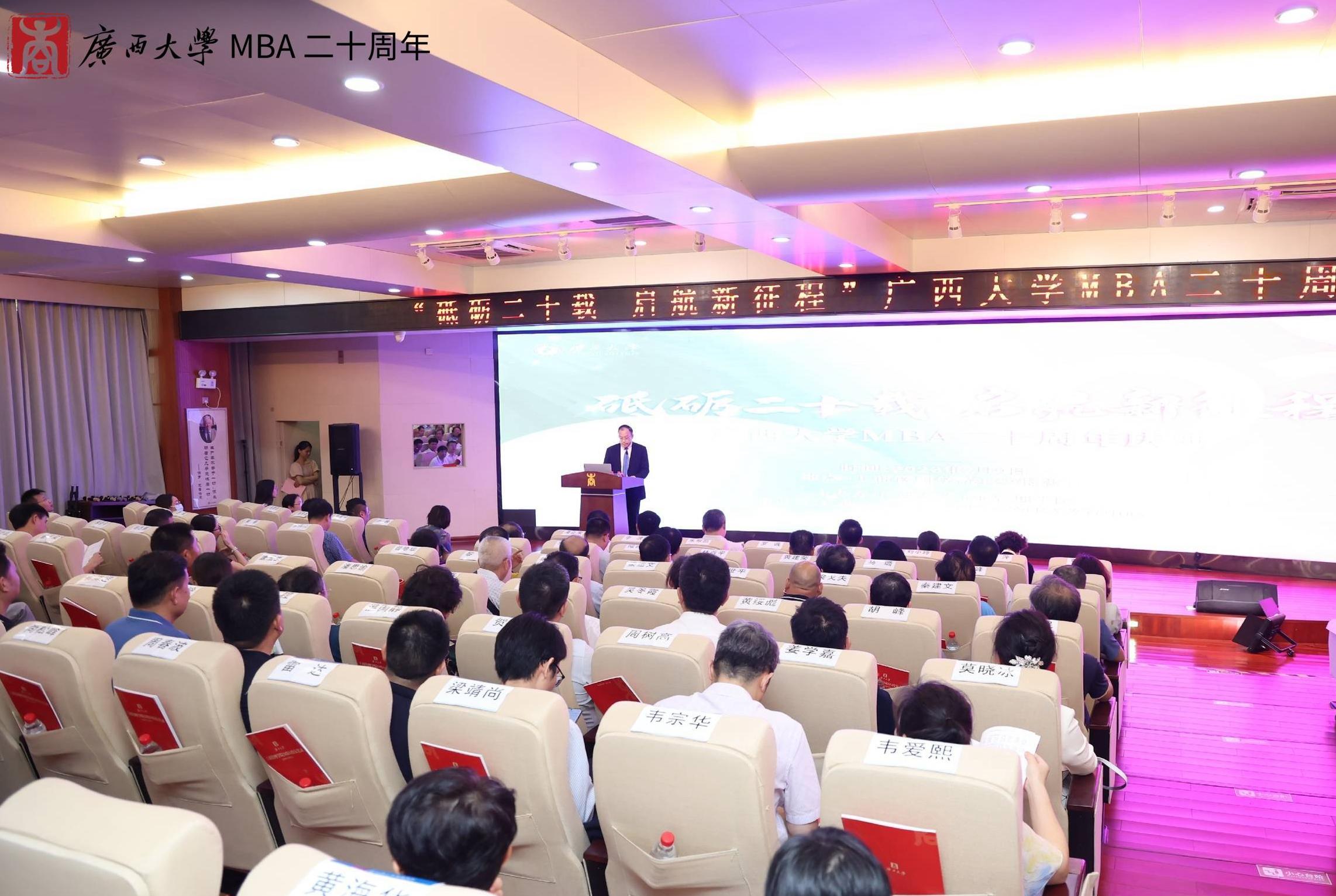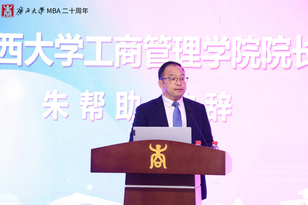 夏国恩副校长在致辞中回顾了英国上市公司365MBA项目从筹办建立到现如今茁壮成长的过程。他指出,我校的MBA教育已形成比较成熟的培养体系,先后为社会培养了近8000名活跃在全国各行各业的MBA优秀人才,为服务国家和广西经济发展做出了重要贡献。他勉励工商管理学院全体教职工在MBA教育20周年新的起点上,再接再厉,再创辉煌。
