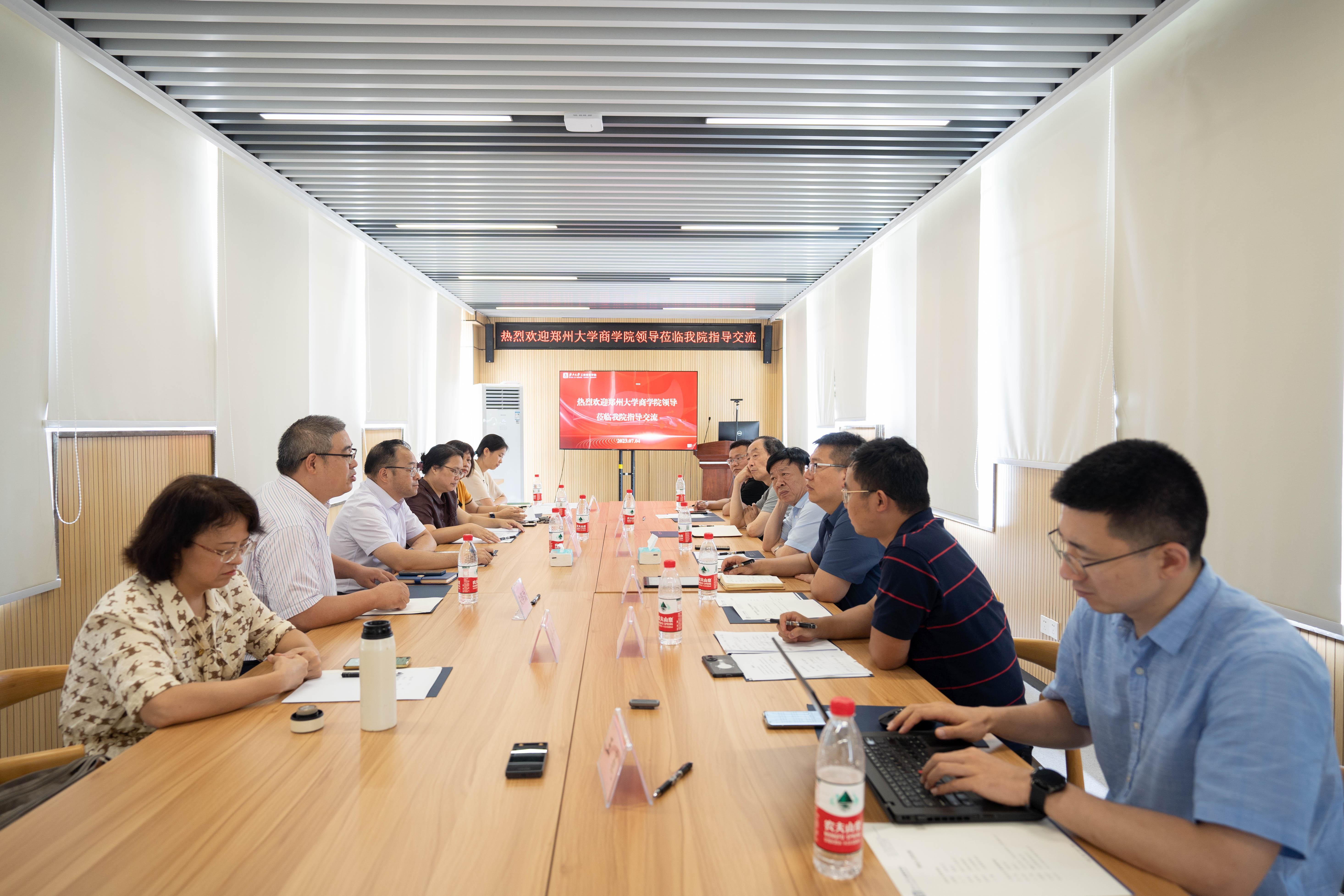 7月4日上午,郑州大学商学院党委书记苗惠卿一行到我院调研,就专业学位办学理念、管理体制、培养模式和特色方向等事宜进行座谈交流。座谈会由我院党委书记罗诚主持,院长朱帮助、副院长朱少英及研究生管理中心相关工作人员参会。