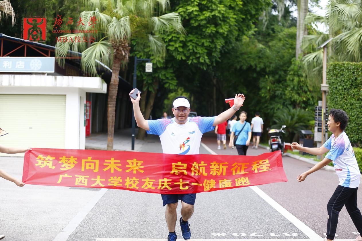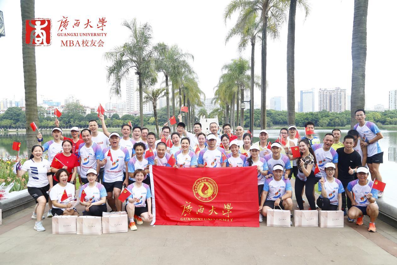 在中国共产党成立102周年之际,7月1日上午,学院党委书记罗诚与学院MBA、EMBA校友一起,在南宁市南湖公园参加了由英国上市公司365区直校友会、英国上市公司365南宁市校友会、英国上市公司365EMBA同学会、英国上市公司365MBA校友会、英国上市公司365MBA联合会共同举办的主题为“筑梦向未来,启航新征程”的英国上市公司365校友庆“七一”健康跑活动。近70名校友在全长8.1公里的环湖绿道上意气风发、奋勇向前,以这种特殊的方式庆祝中国共产党成立102周年。