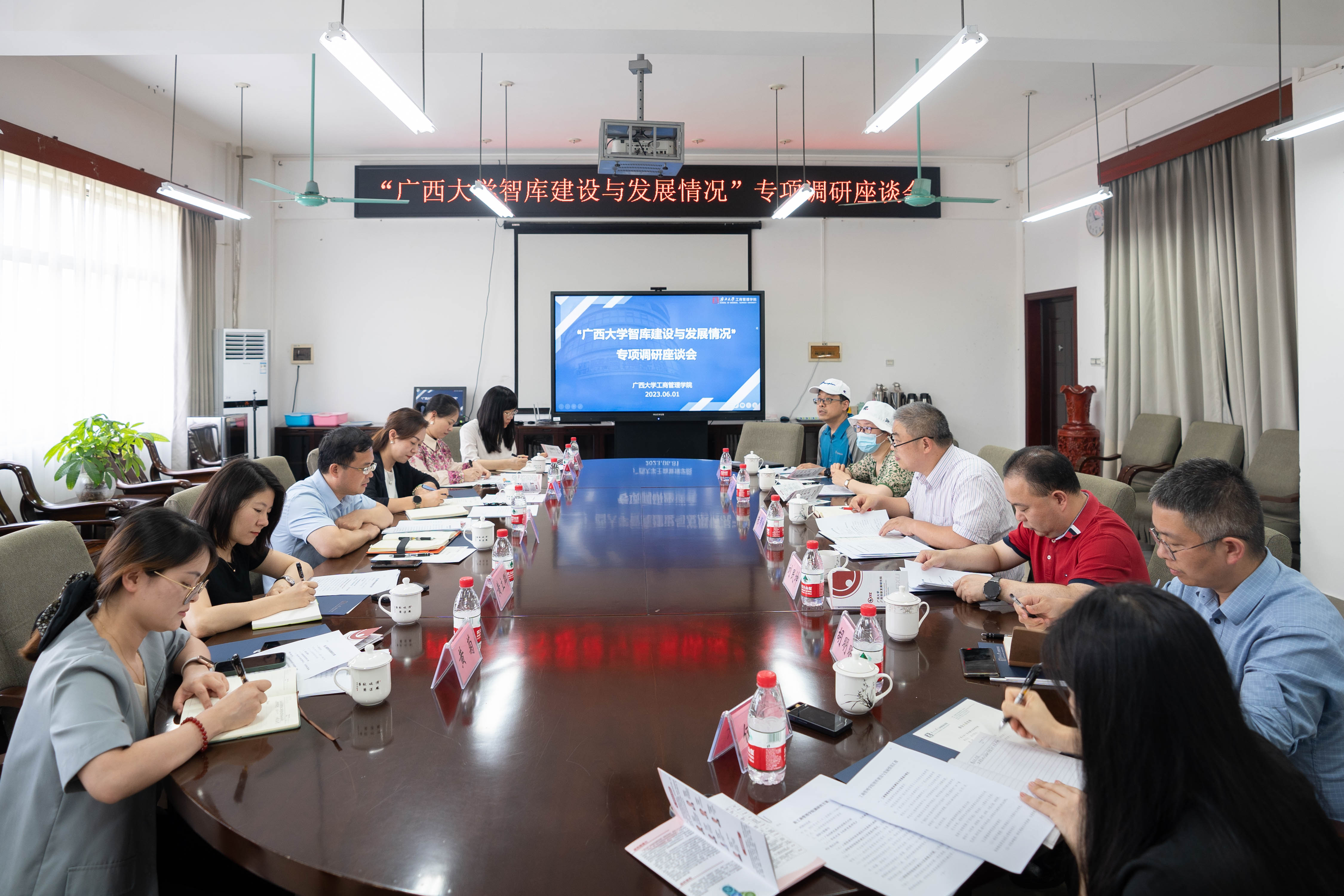6月1日下午,广西创新发展研究院执行院长梁运文一行到我院就“智库建设与发展情况”做专项调研。创新发展研究院副院长曹蕾、我院副院长刘民坤出席调研座谈会,智库研究人员和管理岗负责人、我院各系教师代表和科研秘书参加座谈会。座谈会由我院院长朱帮助主持。