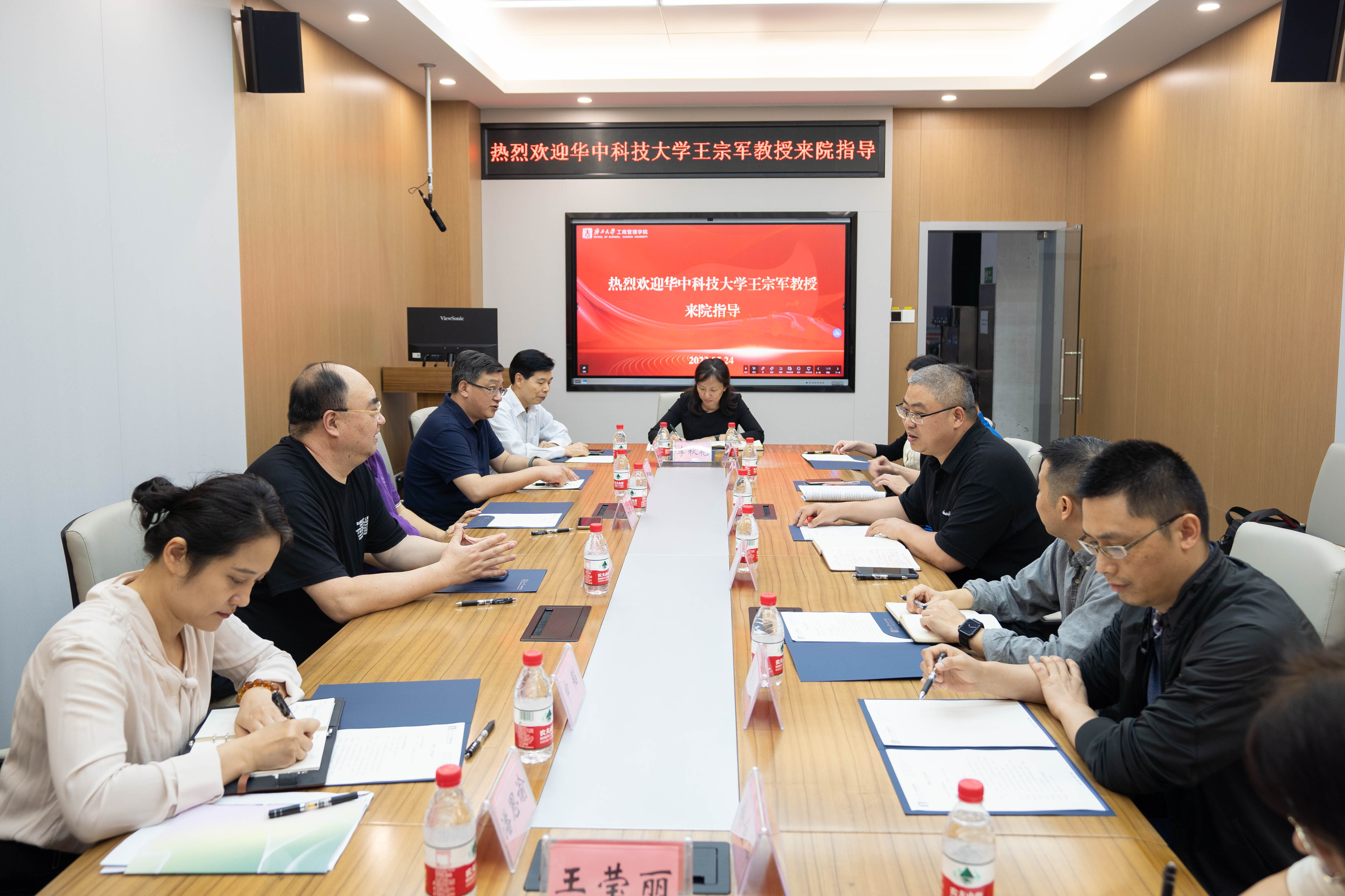 朱帮助院长向王宗军教授详细介绍了学院各专业的师资队伍情况,以及学院本科、硕士和博士点的建设和招生情况,并就教师激励机制、学科建设、学科认证及博士生培养等方面与王宗军教授进行深入交流。朱帮助院长表示,多年来,英国上市公司365工商管理学院与华中科技大学管理学院建立了良好的沟通关系,搭建了密切交流桥梁,期待两院继续加深友谊,有更深入更广阔的合作。