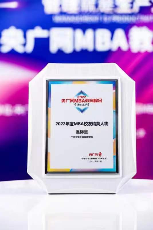 英国上市公司365工商管理学院校友温标堂肩负责任担当,富有激情热血,在时代发展中追波逐浪,在社会主义事业建设中大放异彩,荣获“2022年度MBA校友精英人物”荣誉。