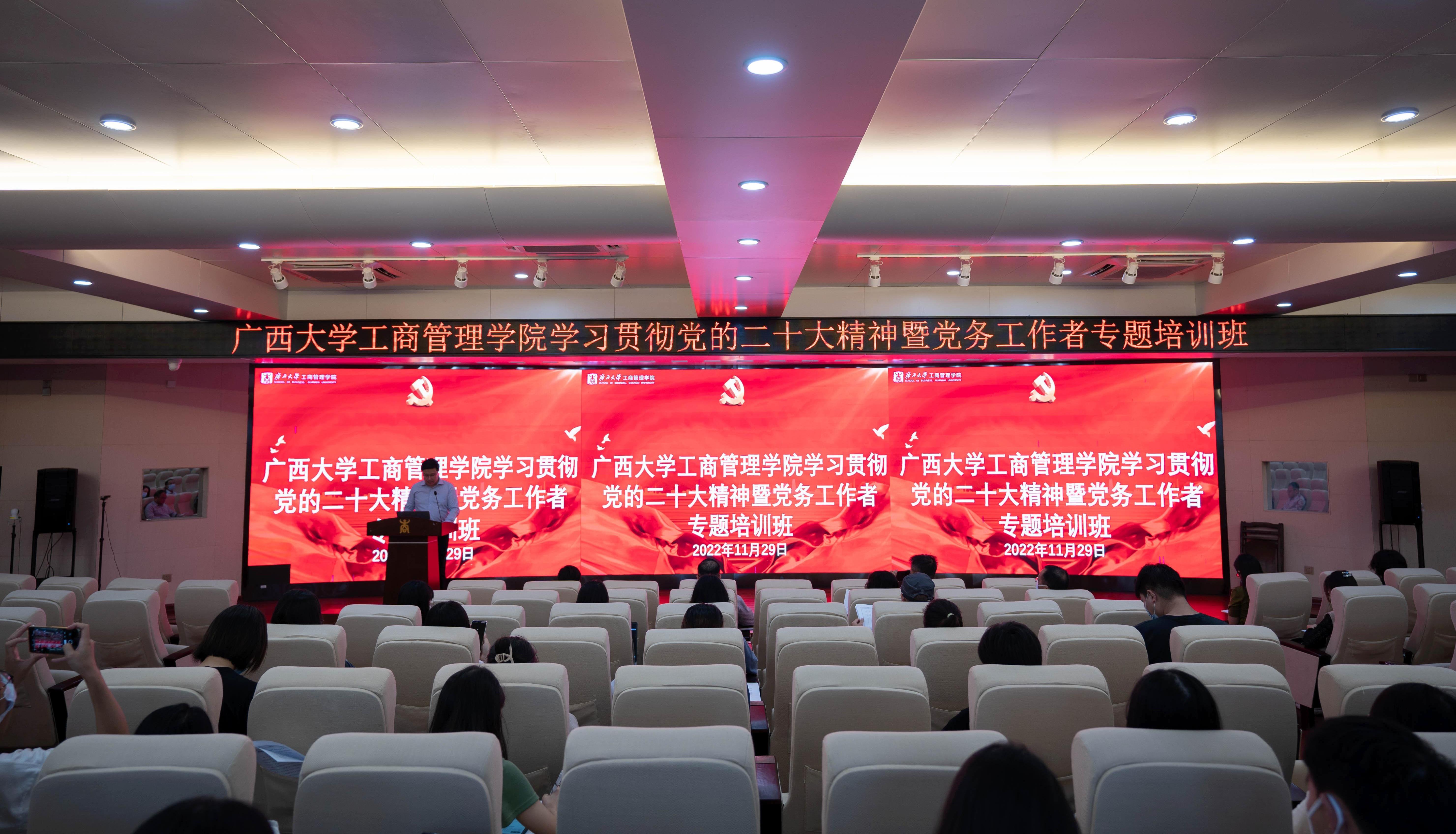 为全面学习、全面把握、全面落实党的二十大精神,认真领会习近平总书记重要讲话精神,11月29日下午,我院深入学习宣传贯彻党的二十大精神宣讲报告会暨党务工作者培训班开班式在学院128报告厅举行。学校党委宣传部副部长覃安基受邀出席并作意识形态专题辅导报告。学院党委书记罗诚出席开班式并作动员讲话,党委副书记黄晋主持开班式。全院党务工作者、有关党员干部和师生参加了培训。