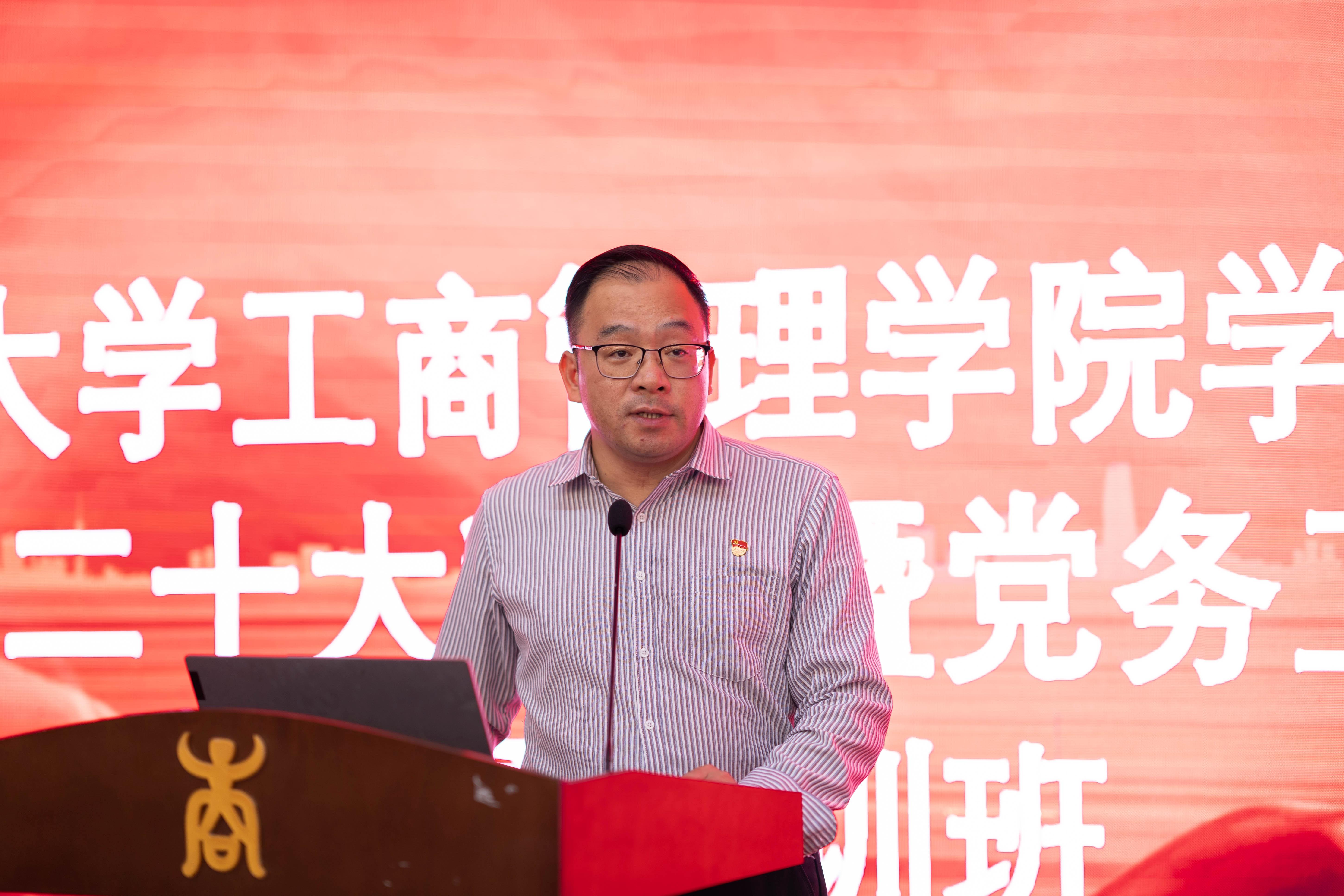 开班式上,罗诚书记就校党委关于深入学习宣传贯彻党的二十大精神的工作要求进行再动员、再部署。他指出,学习宣传贯彻党的二十大精神是当前和今后一个时期的首要政治任务,全院党员干部和师生员工要紧密团结在以习近平同志为核心的党中央周围,坚定拥护“两个确立”、做到“两个维护”,务必不忘初心、牢记使命,务必谦虚谨慎、艰苦奋斗,务必敢于斗争、善于斗争,全心全意办好人民满意的教育,努力培养德智体美劳全面发展的社会主义建设者和接班人,以昂扬的精神状态和务实的工作作风推动学院高质量发展。他希望参加培训的党员同志们严格遵守教学计划的各项安排,珍惜和把握好难得的学习机会,静下心来认真学习,原原本本学、融会贯通学、带着问题学、联系实际学,通过培训进一步强化理论素养、明确工作职责、改进工作作风,提升工作能力和水平,共同推进我院基层党建工作更上新台阶。