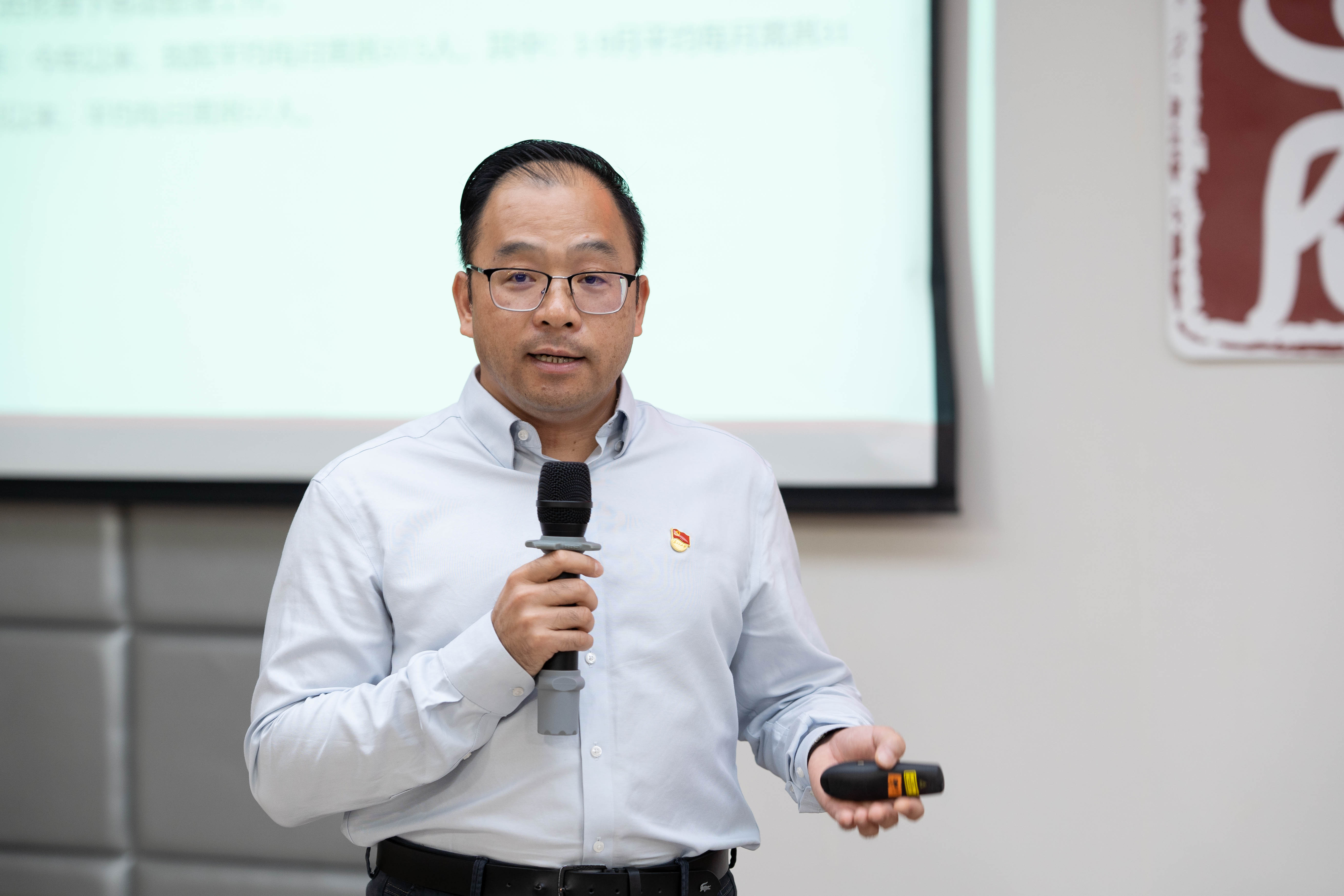 院长朱帮助就学院近期出台的高水平科研团队和科研成果培育办法进行了介绍和解读。他指出,学院出台该办法旨在进一步营造学院良好的科研氛围,加快高水平科研团队建设和科研成果产出,全院教职工要敢于争先,精诚团结打造高水平科研团队,营造浓厚科研氛围,培育高水平科研成果,以科研反哺教学,提高学院教学、科研和人才培养水平。他强调,为激发教师的教学科研热情,学院为每一位老师搭建好教学科研平台,做好服务工作,希望全体教职工高度重视,积极融入国家重要战略和广西经济社会发展大局,加强沟通和研究,把教学科研工作抓起来、干起来,落实落地,切实提高教学科研能力与水平,为学院立德树人、学科建设和高质量发展提供有力支撑。