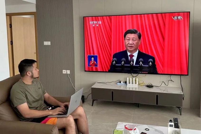 研究生第五党支部书记、2021级硕士研究生黄文朗:通过收看盛会,本人感受深刻,在以习近平同志为核心的党中央正确领导下,我国综合国力在科技、文化、法制等领域取得巨大的提升,这大大提升了我们青年学生的民族自豪感。习近平总书记教导我们,青年强则国家强。这将鞭策我们不断努力学习,提升自我,在全面建成社会主义现代化强国这一伟大历史时期贡献自己的力量,实现自己的人生价值。