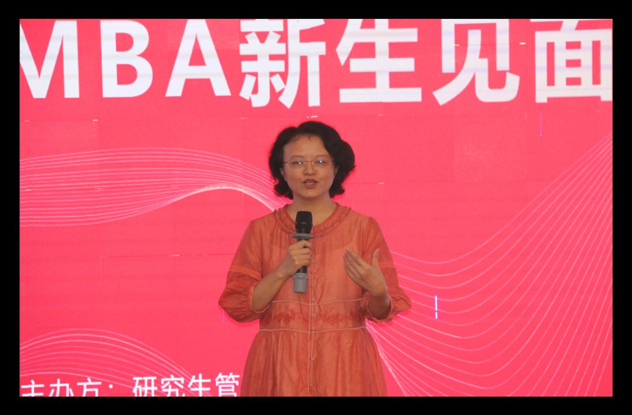 研究生管理中心副主任、MBA教育中心主任叶映从MBA教育中心组织构架、MBA招生情况、培养方向、师资队伍、专业评估、合作办学、MBA培养流程及学业预警与分流等几个方面介绍MBA专业情况及研究生培养要求,帮助同学们快速了解专业情况及培养环节中的注意事项。