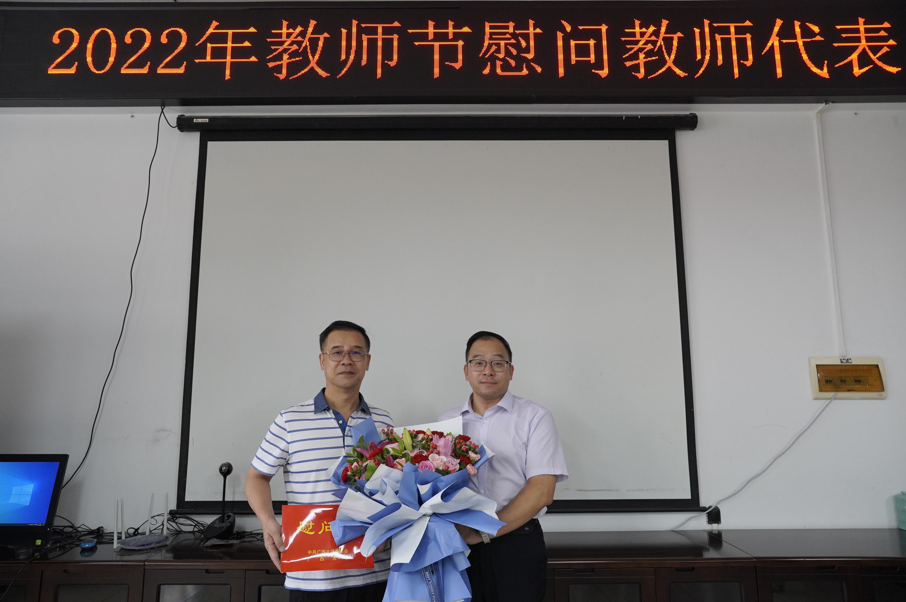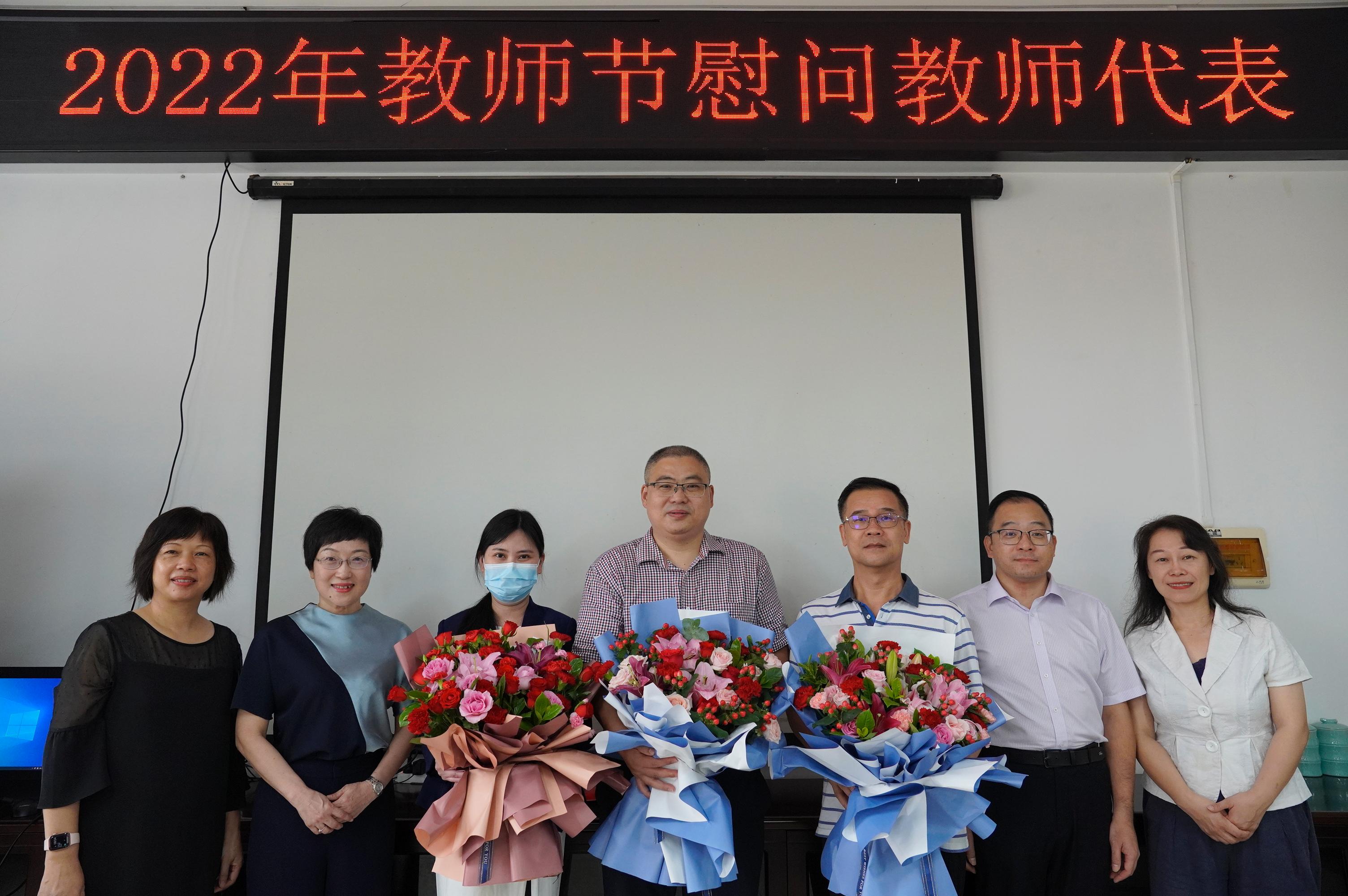 慰问活动中,罗诚书记代表学院党委向三位教师代表致以节日的祝福和亲切的慰问,并通过他们向辛勤耕耘、默默奉献在各自工作岗位上的全院教职工致以节日的问候和崇高的敬意!感谢大家在过去的日子里对学院的发展所付出的辛苦和做出的贡献!罗书记指出,今年教师节的主题是“迎接党的二十大,培根铸魂育新人”。他号召全院教职工共同努力,在全面建设社会主义现代化国家新征程中勇担培育时代新人的历史使命,以昂扬向上的精神面貌和立德树人的扎实行动,迎接党的二十大胜利召开!