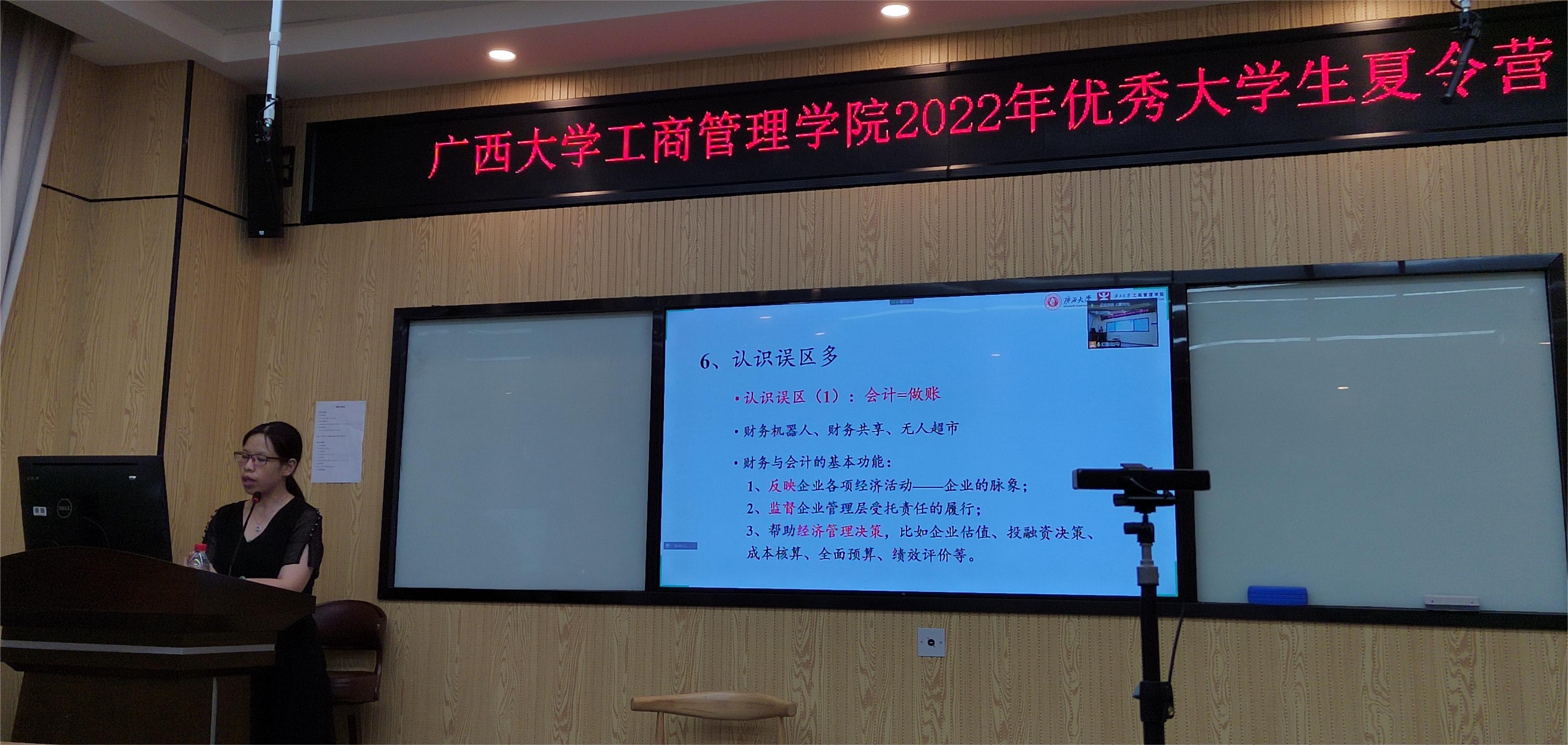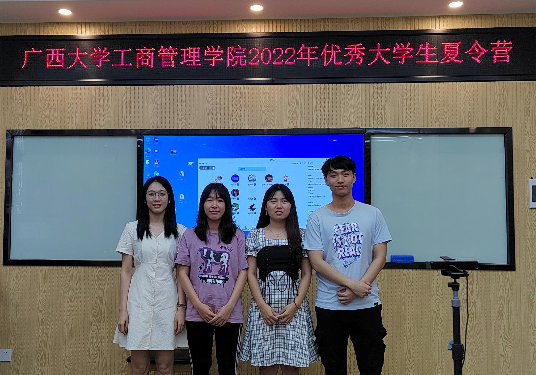 7月6日上午,研究生秘书邓素媛主持考研经验交流沙龙环节,我院2021级韦梅婷、张舒源、韦欢欢、罗咏诗四位硕士研究生与营员们分享了自己的考研经历,并与营员们进行了深入的互动交流。下午,研管中心黄昱老师带领营员们观看学校宣传篇,开展知识抢答,并特邀张家伟(2020级博士)、李姝蓉(2020级硕士)2位优秀在读研究生及海晨颖(2018级)、山冬鲁(2019级)2位优秀校友分享自己研究生阶段学习经验。