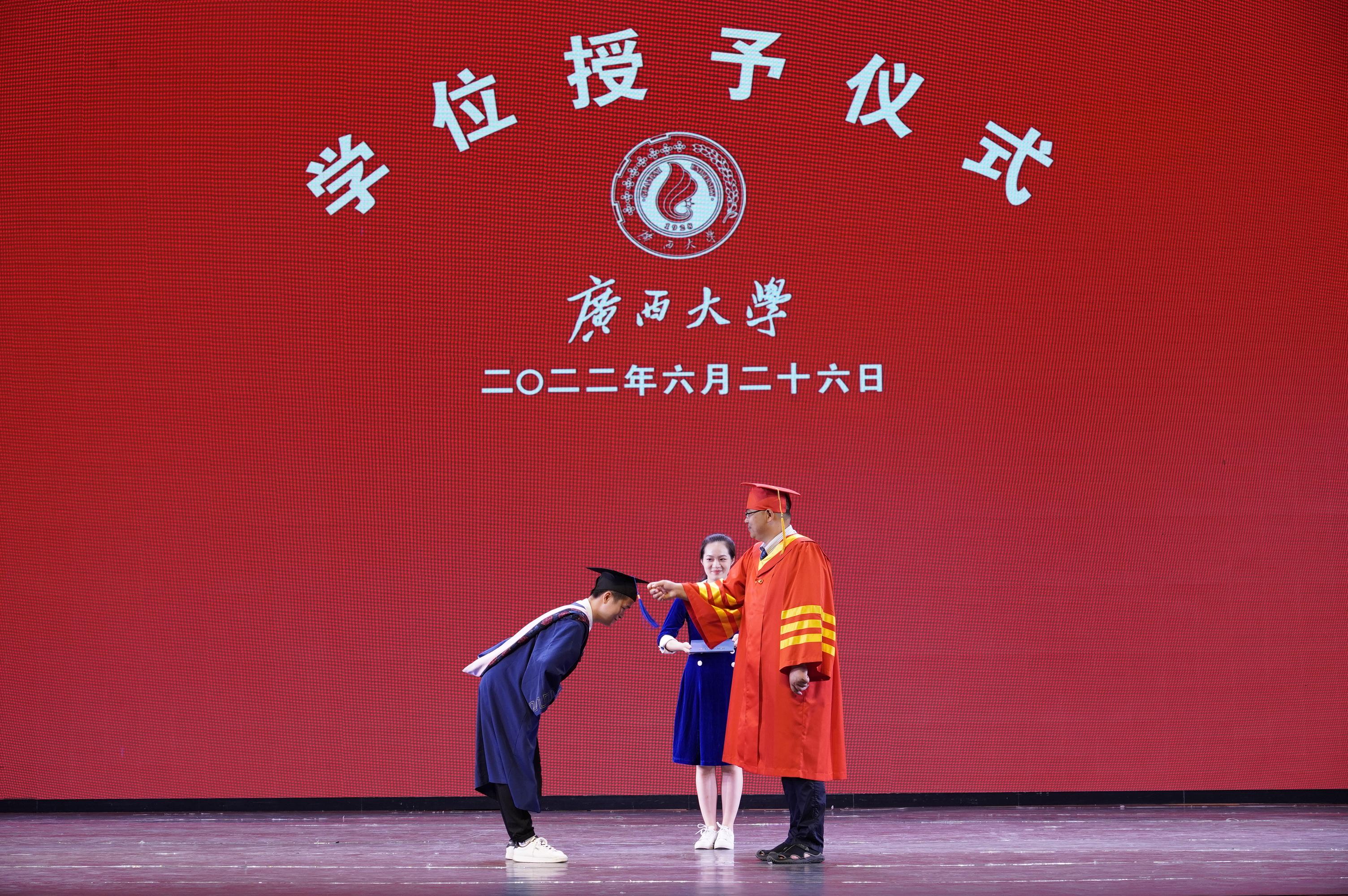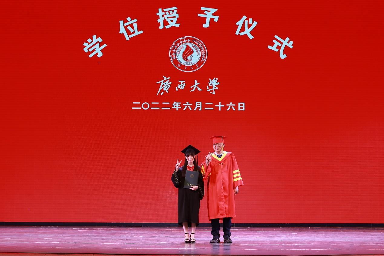 伴着激昂的校歌,2022届毕业典礼降下帷幕,学位授予仪式正式开始,由院长朱帮助为755名毕业生一一拨穗、授予学位证书和合影留念。拨穗正冠,学士帽的流苏从右到左,象征着毕业生们学有所成、展翅高飞!