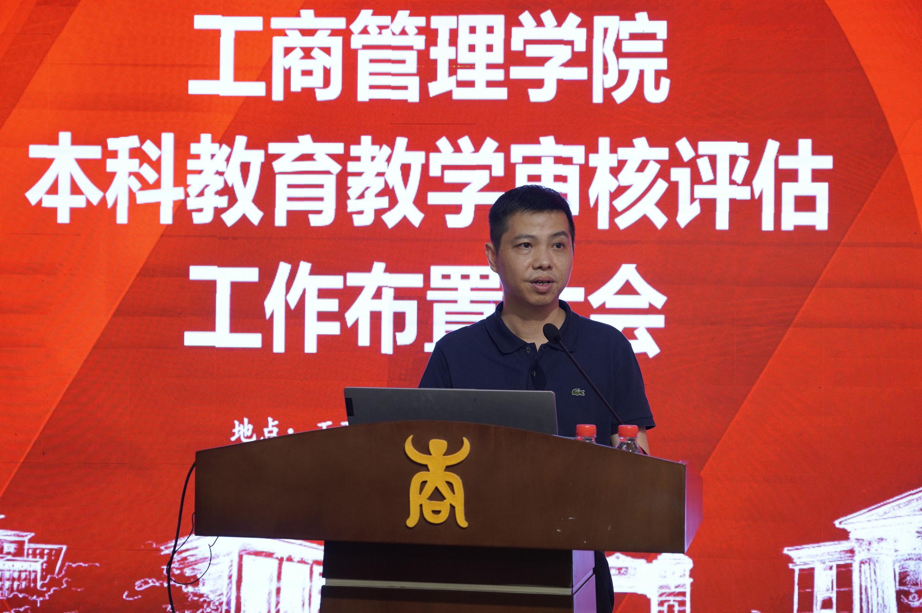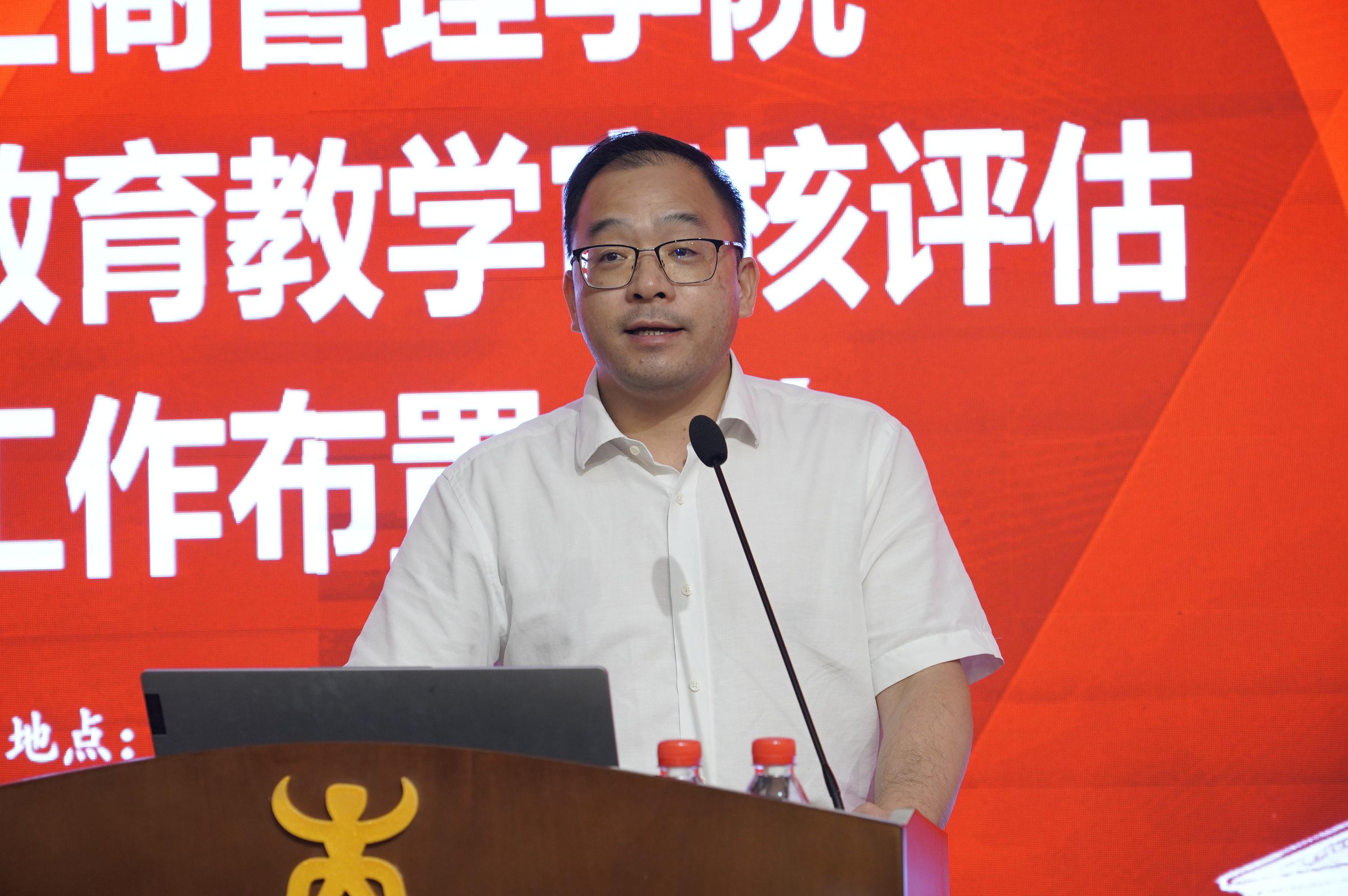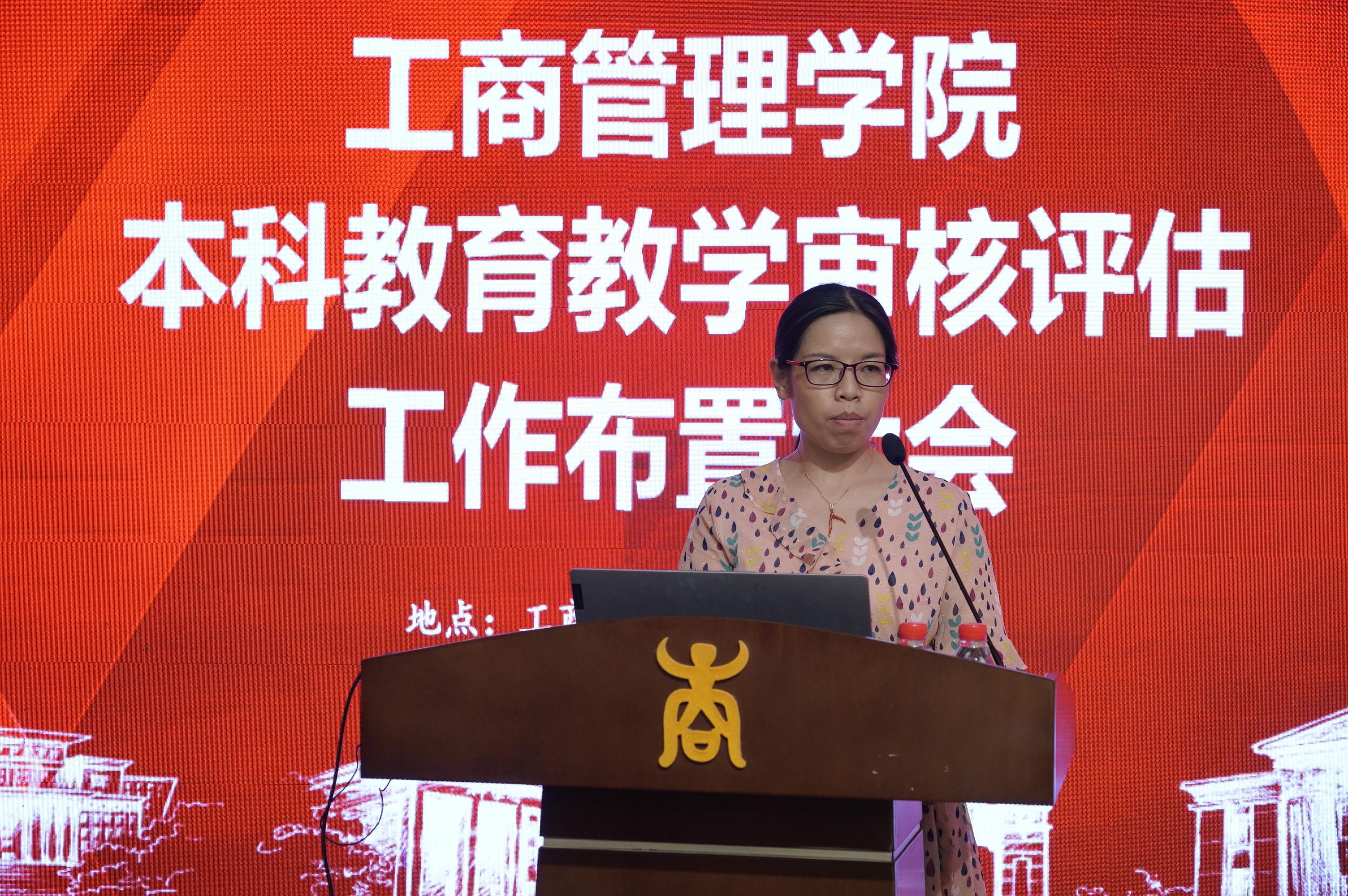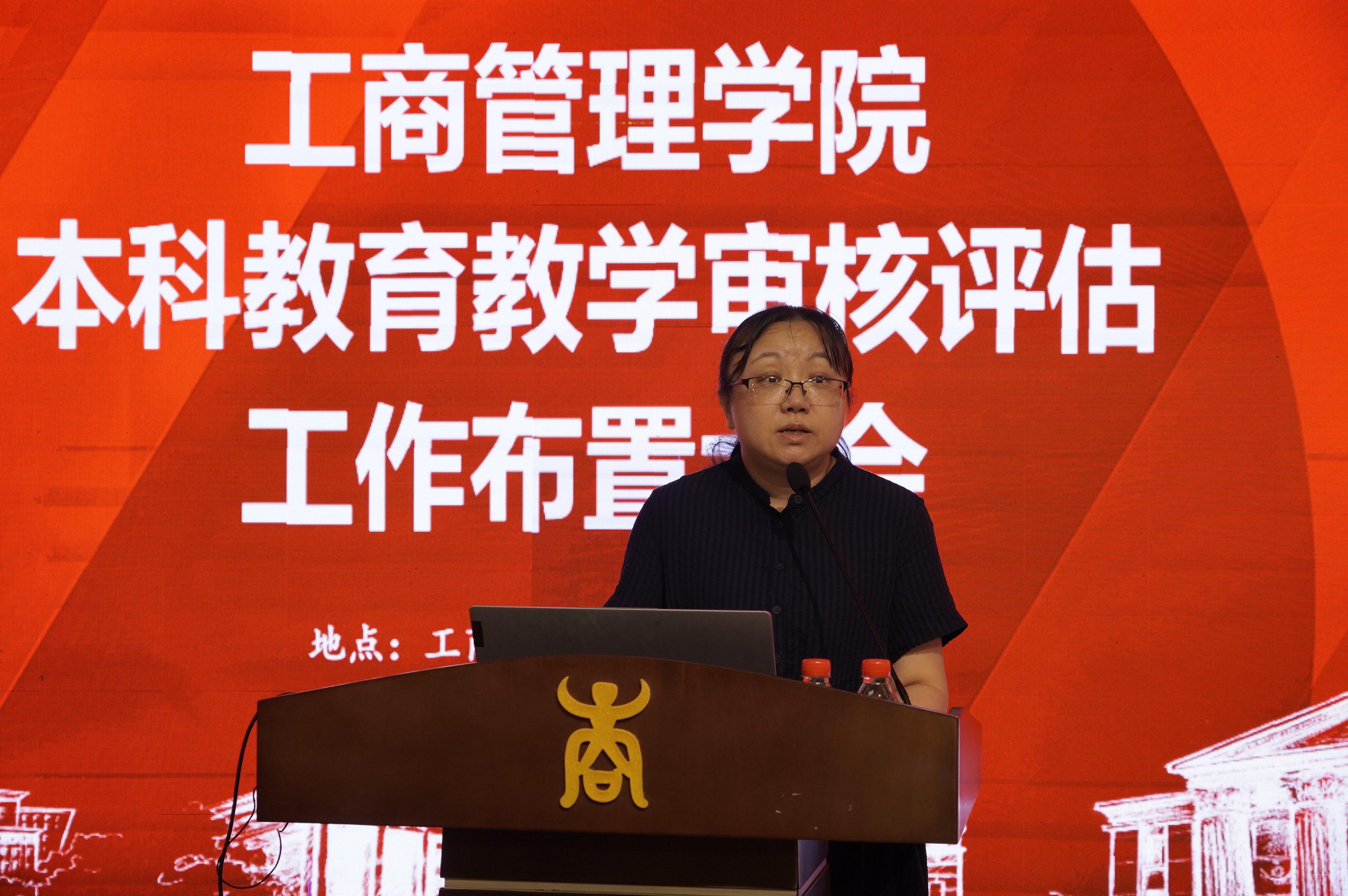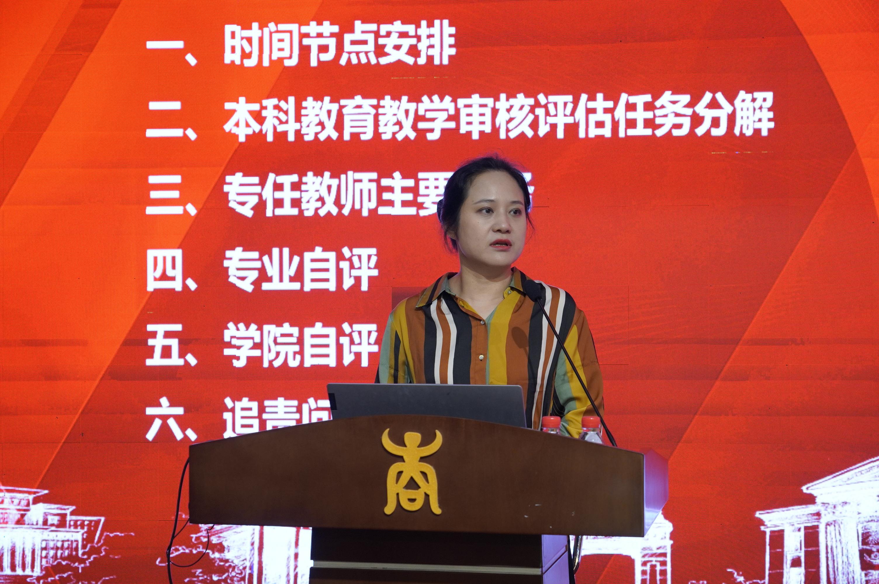 申韬副院长从迎评工作重要时间节点、本科教育教学审核评估任务的分解、专任教师主要任务、各专业自评报告要求、学院自评报告要求以及追责问责等六个方面解读了本次本科教育教学审核评估的相关文件和要求。她希望全体老师统一思想,凝聚共识,提高战略,形成合力,共同推进本科教育教学审核评估工作的顺利开展。