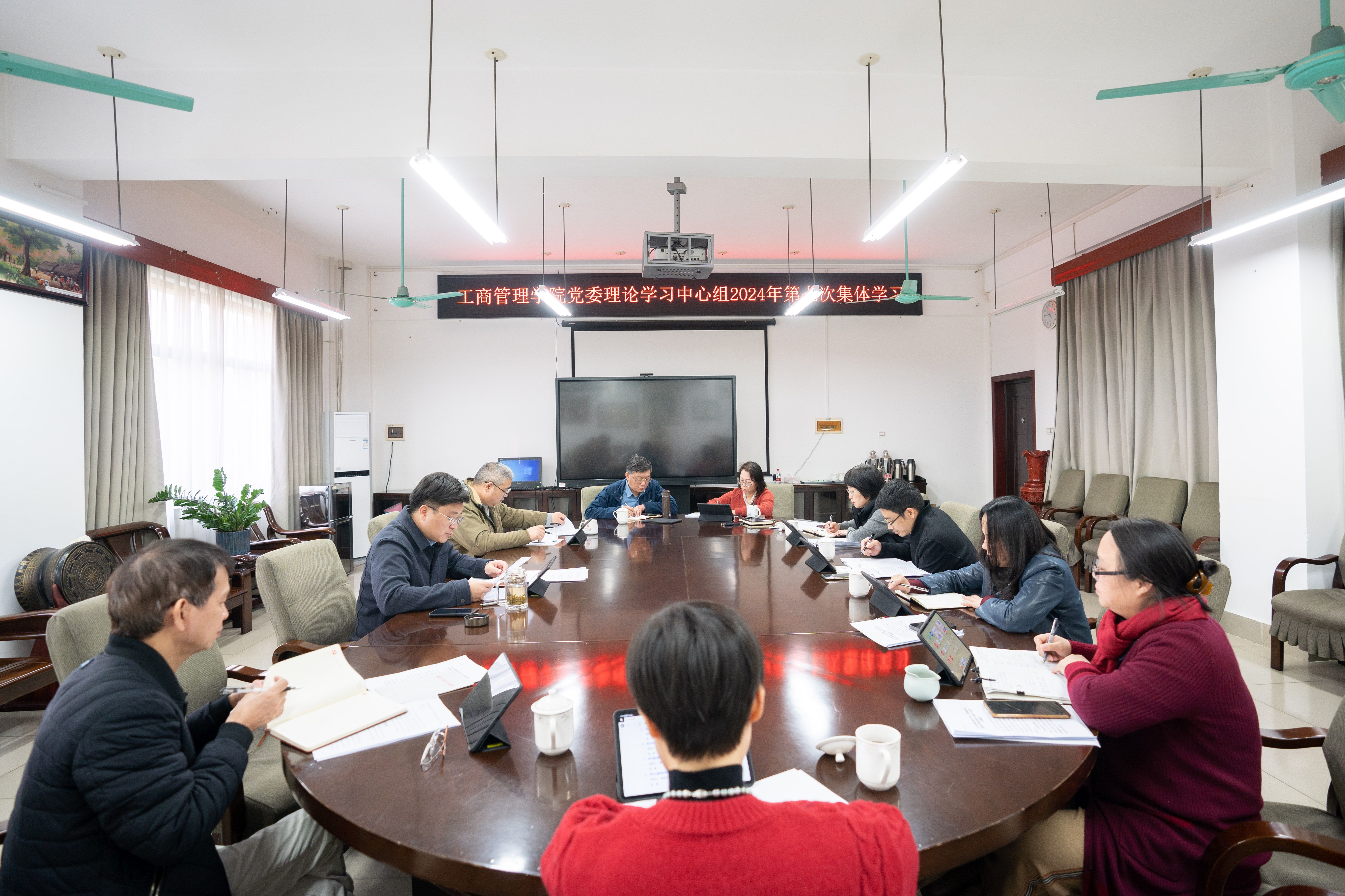 12月19日下午,工商管理学院党委理论学习中心组召开2024年第7次集中学习会。学院党委书记黄晋主持会议并领学,学院党委理论学习中心组全体成员参加会议。