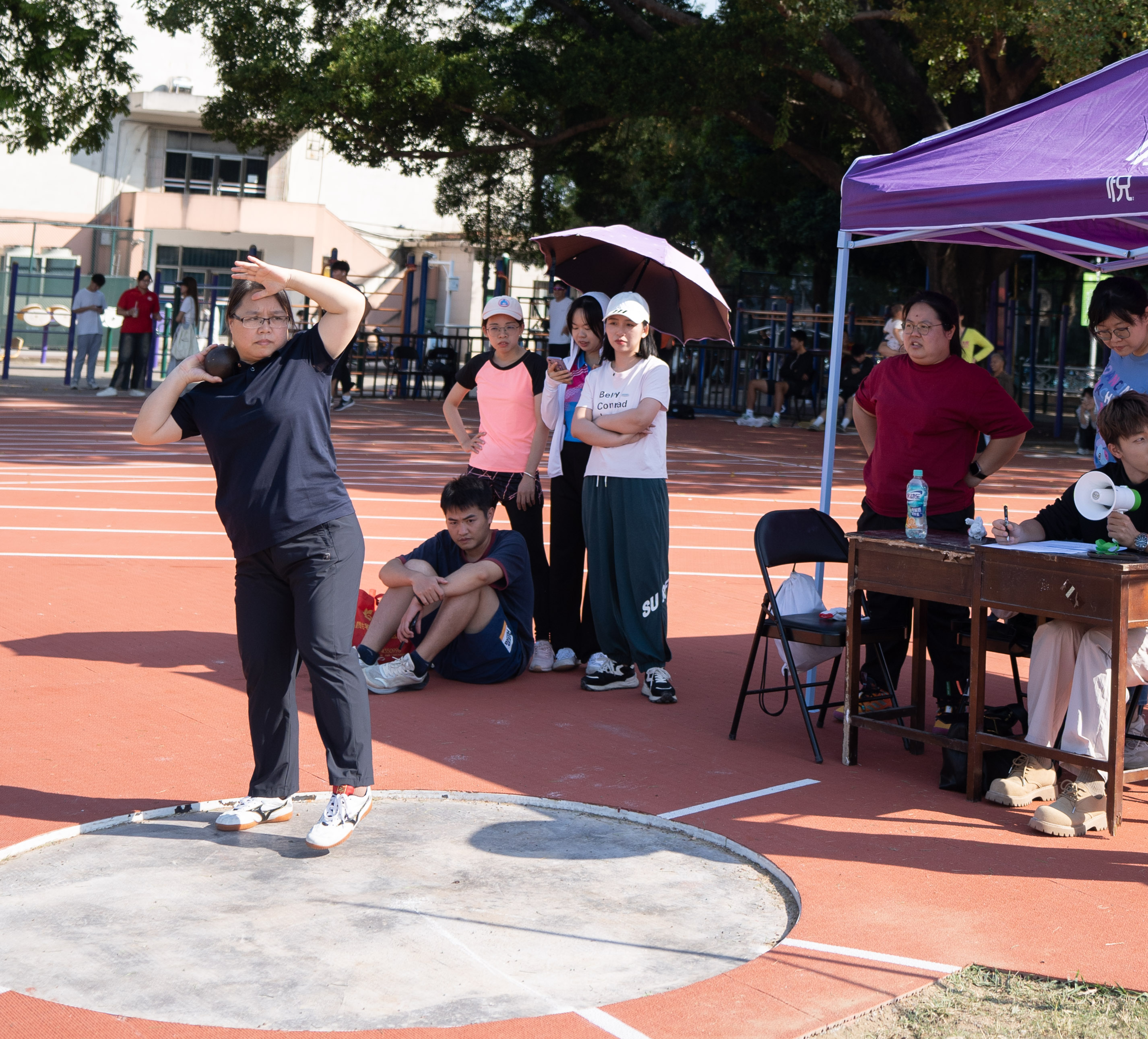 朱少英参加女子丙组铅球比赛