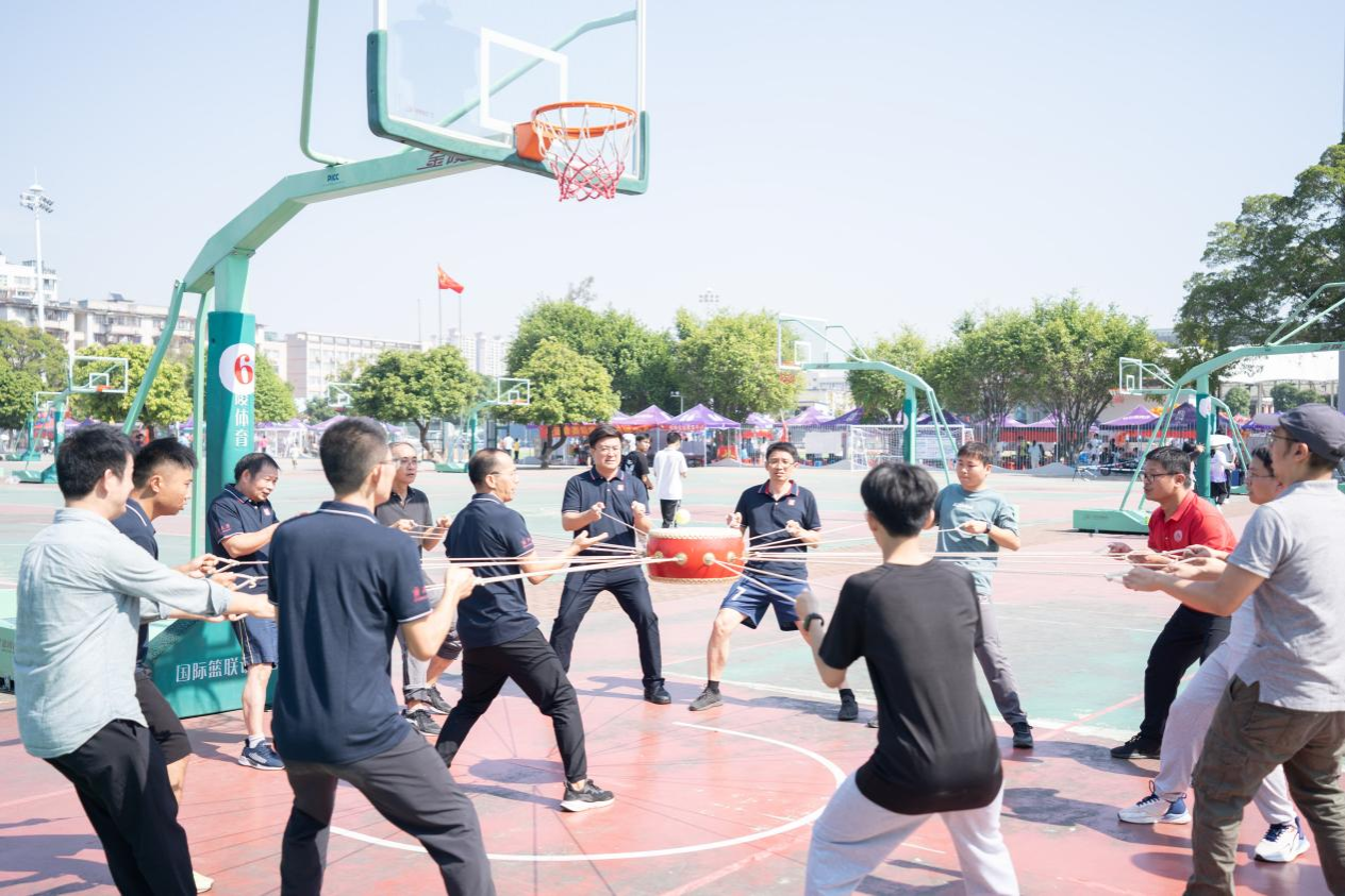 我院代表队在男子击鼓颠球比赛中