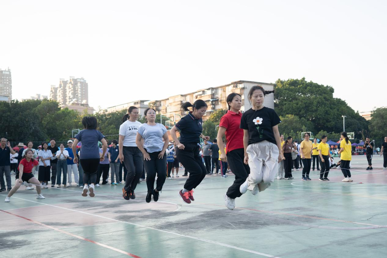 我院代表队在女子八人跳长绳比赛中