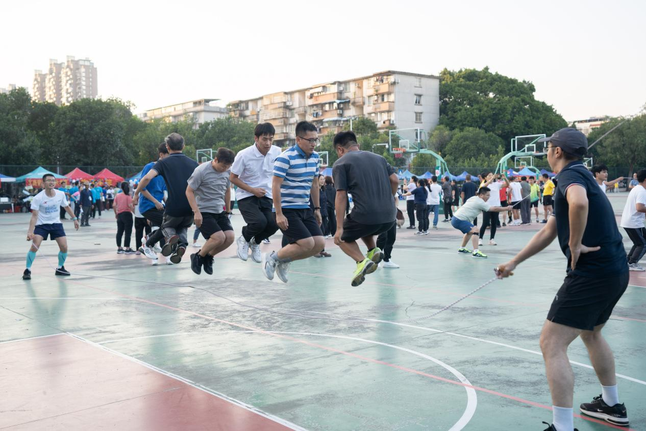 我院代表队在男子八人跳长绳比赛中