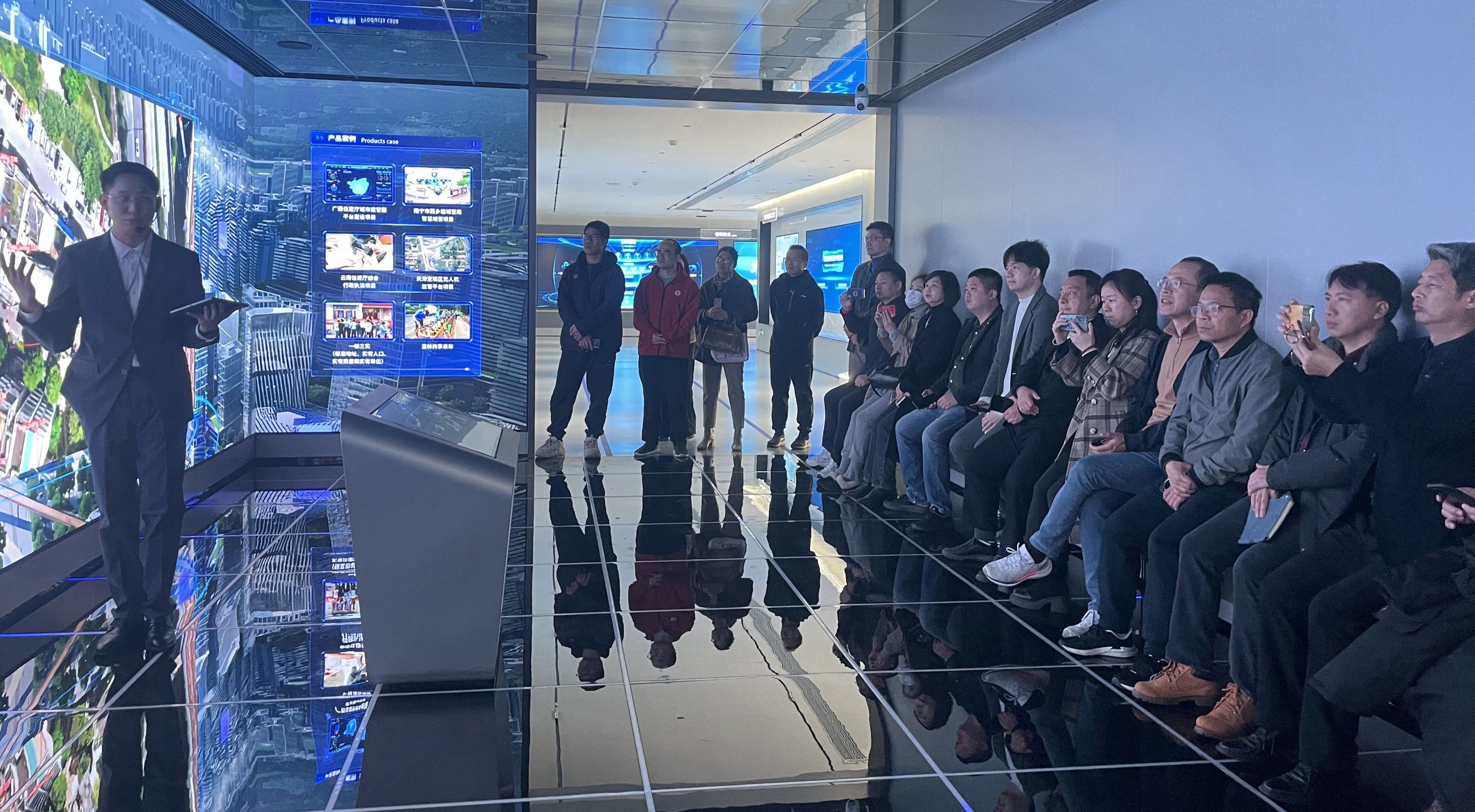 在人工智能展厅,润建股份技术事业部总监刘钊宏向校友们展示了智能算力基础设施、AIOT平台及行业大模型研发成果。通过智慧城市、通信网络、智能制造等场景化案例,直观呈现AI技术驱动千行百业数字化转型的实践路径,引发了校友们对技术落地的深度思考。