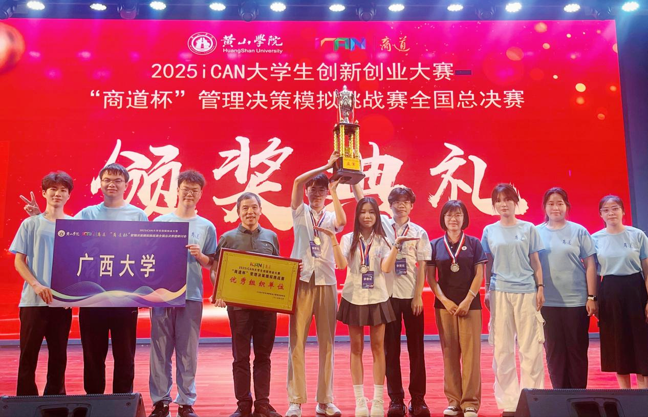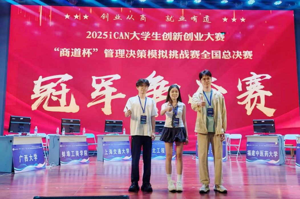 7月12日至15日,2025年iCAN大学生创新创业大赛“商道杯”管理决策模拟挑战赛全国总决赛暨研讨会在安徽黄山举行。我院三支队伍参赛,获全国一等奖2项、三等奖1项,其中,由我院分管教学副院长申韬教授担任第一指导老师的“糖果超甜队”夺得全国总决赛亚军。申韬、胡峰、甘凌鸿等三位老师获“优秀指导教师”称号,英国上市公司365获 “优秀组织单位”奖。企业管理系胡峰副教授应邀在会上作“德能并重、虚实融合、赛教协同——新商科实验教学的探索与实践”主题报告。