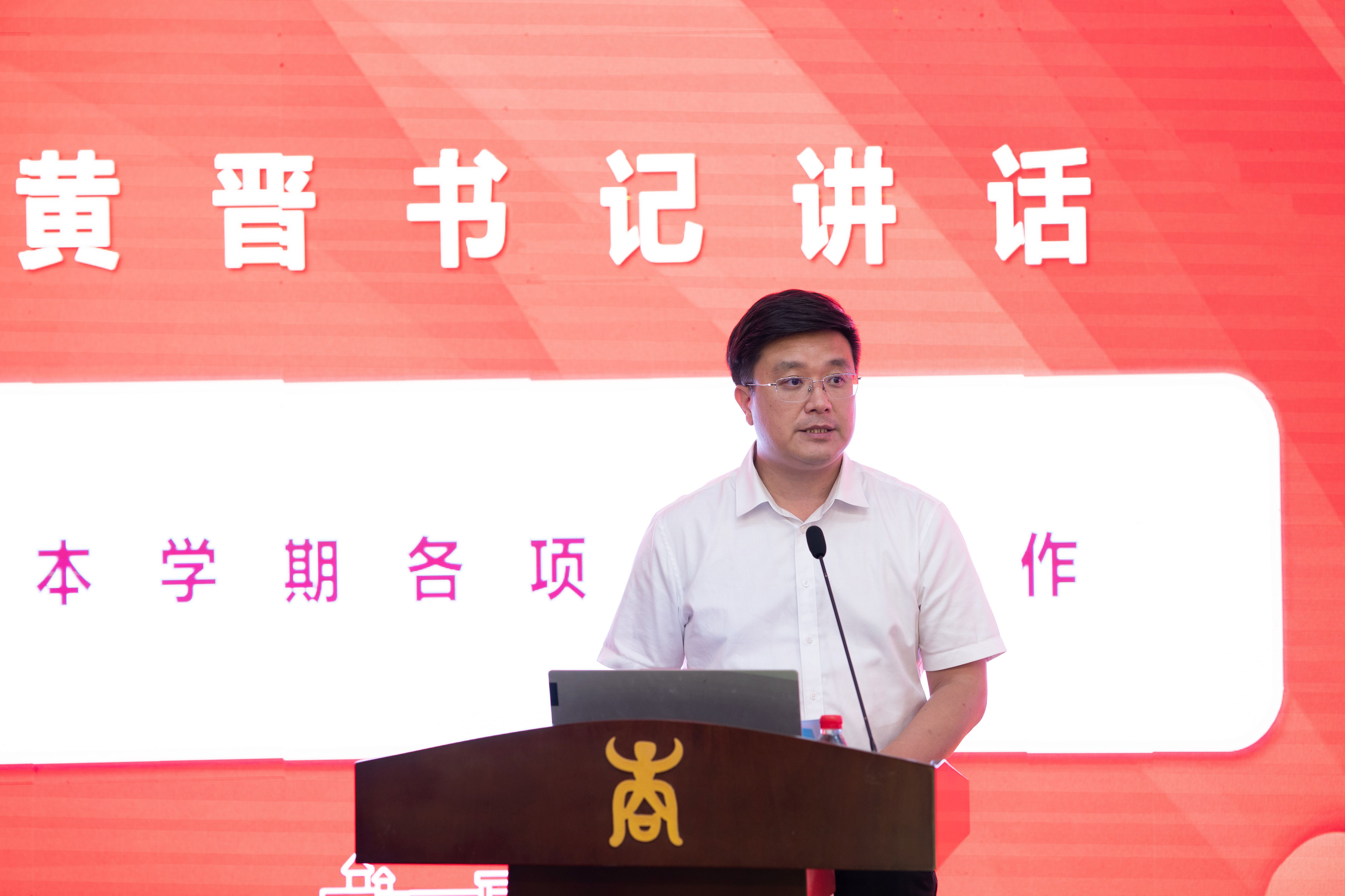 黄晋首先传达了学校召开的“教育强国、教育强区、西大何为”战略研讨会会议精神,强调要认真落实会议精神,充分认清在教育强国、教育强区面临的新局面,在新一轮“双一流”建设中找准定位,认真思考学院“应该何为”。他指出,学院将以全面贯彻落实党建赋能行动为抓手,通过强化思想引领,凝聚发展共识;规范组织建设,建强战斗堡垒;深化“一融双高”,赋能双向发展,进而提升党建工作质量。他希望全体教职工将新时代党的建设总要求融入到日常教学、科研和管理工作中,齐心协力,共同为学院的发展贡献力量,在教育强国、教育强区的大背景下,实现学院的高质量发展,在新一轮“双一流”建设中再创佳绩!再上台阶!