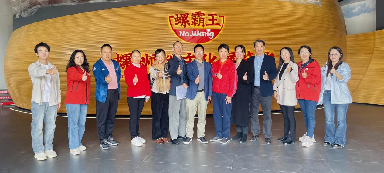 在螺霸王食品科技公司,调研组实地走访了螺蛳粉从原料甄选、精深加工到无菌包装、智能出厂的全链条生产流程,深度调研品牌IP打造、标准化生产体系构建及供应链协同管理的实践经验。作为柳州特色产业的标杆代表,螺蛳粉产业的规模化发展路径与市场化运营模式,为学院“运营管理”“品牌营销”等核心课程嵌入本土产业案例、优化教学内容提供了鲜活样本。