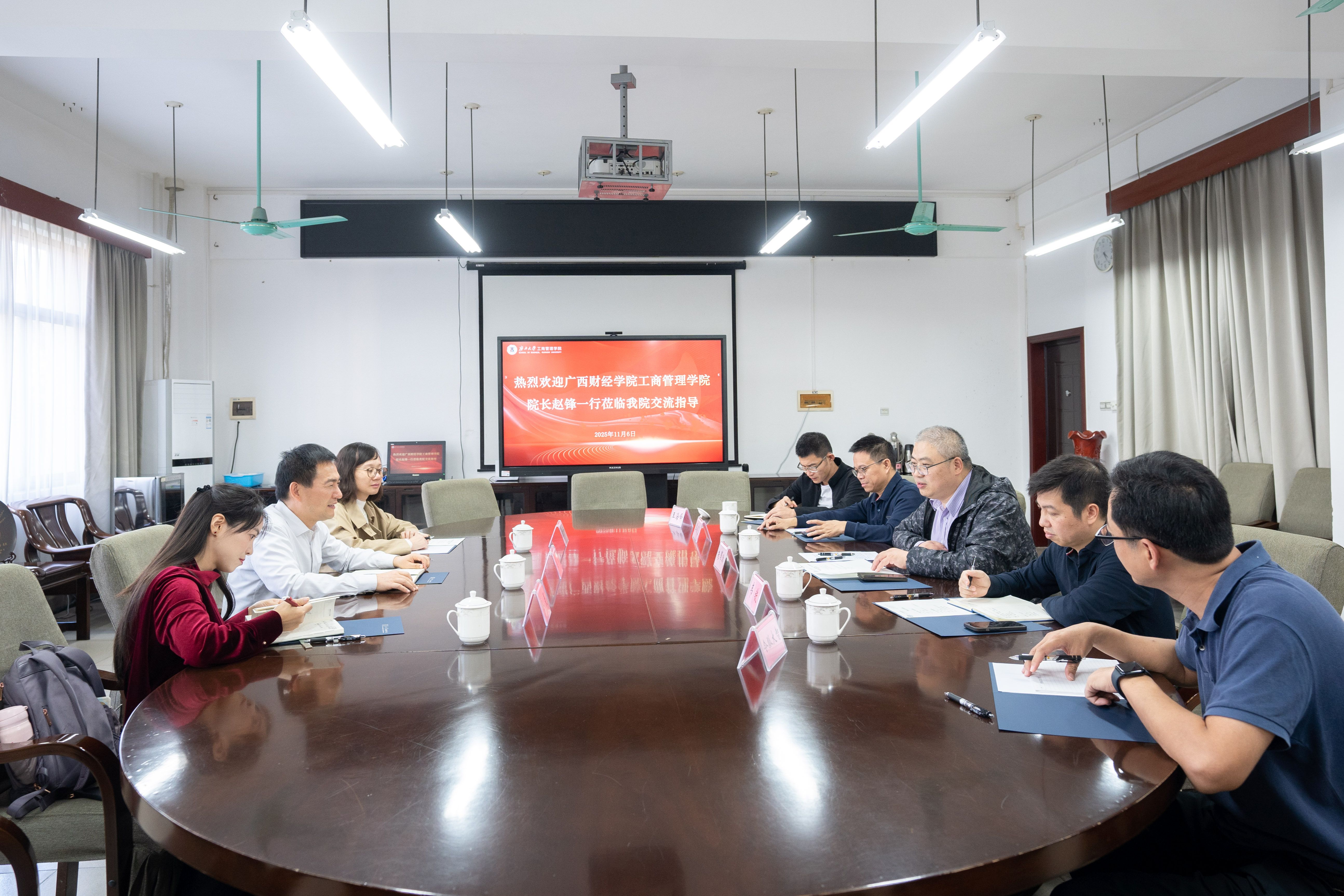 11月6日下午,广西财经学院工商管理学院院长赵锋、副院长陆丹丹一行到我院调研交流。学院院长朱帮助、副院长韦铁及相关部门负责人出席座谈会,会计与财务金融系教师代表参加座谈会。