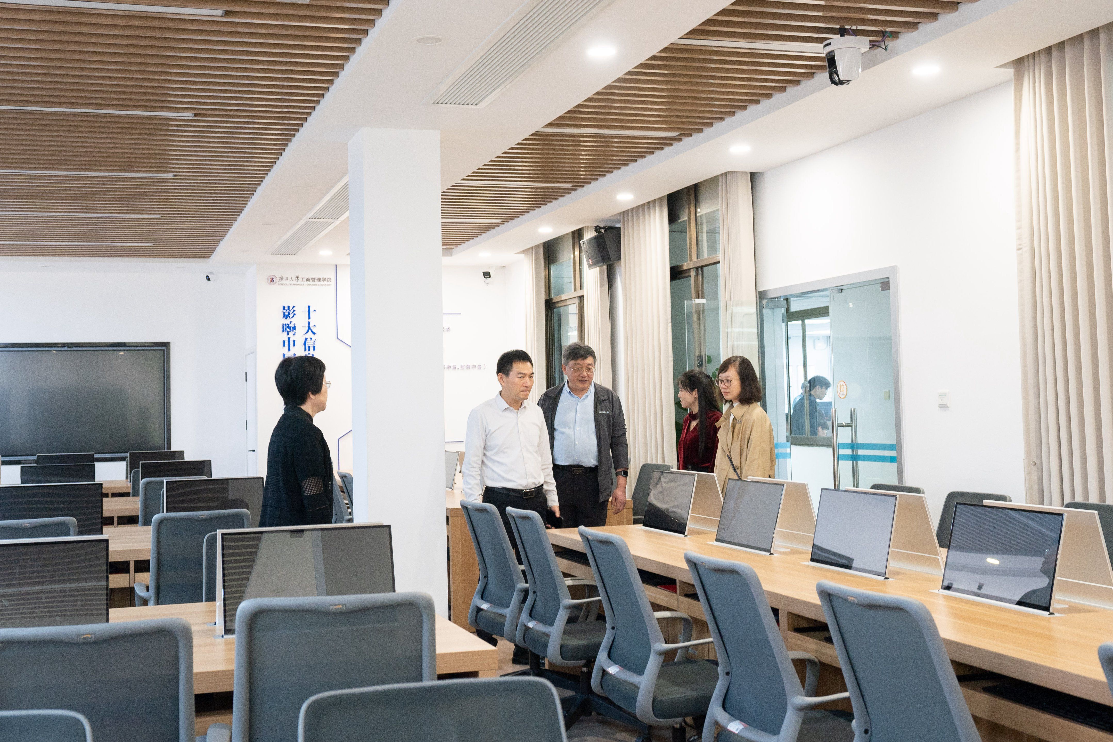 会前,赵锋一行在副院长廖东红的陪同下参观了我院研究生管理中心、智能会计与智慧财务实验室、教师工作间、研讨室、研究生自习卡座等办学环境和教学设施。