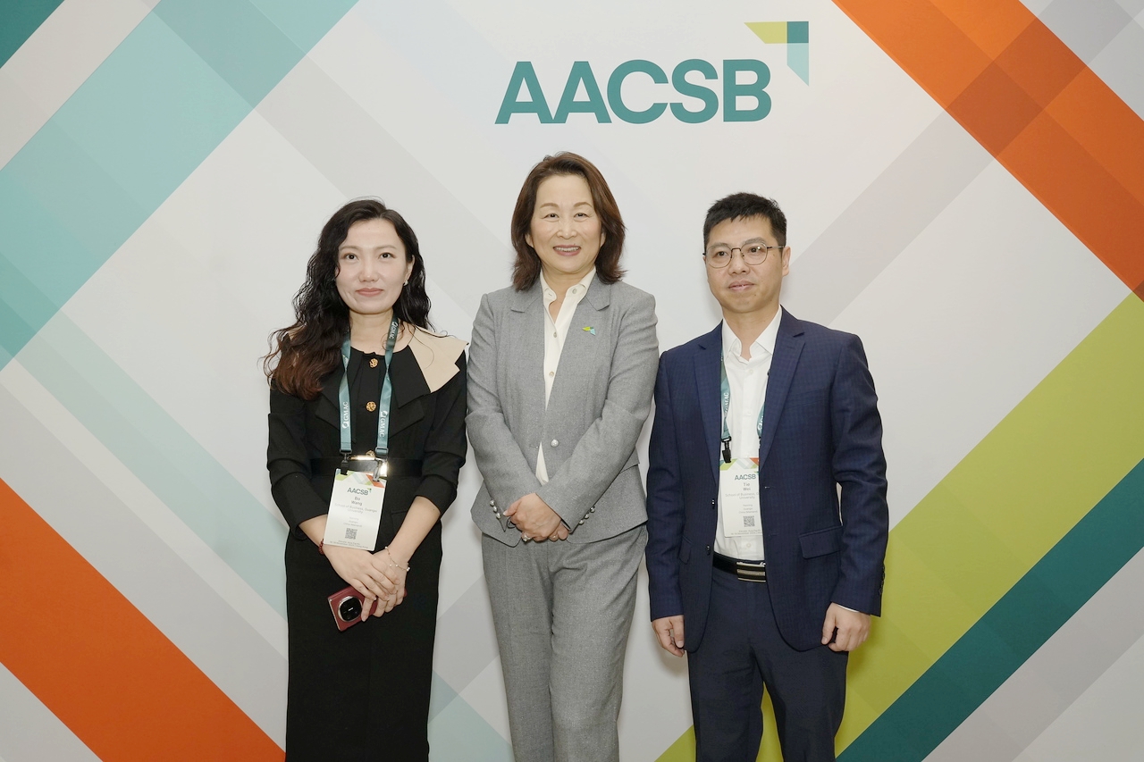 AACSB总裁兼首席执行官Lily Bi与韦铁、王玻合影