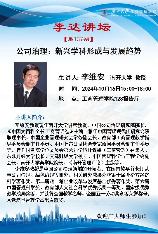 李达讲坛第137期|公司治理:新兴学科形成与发展趋势