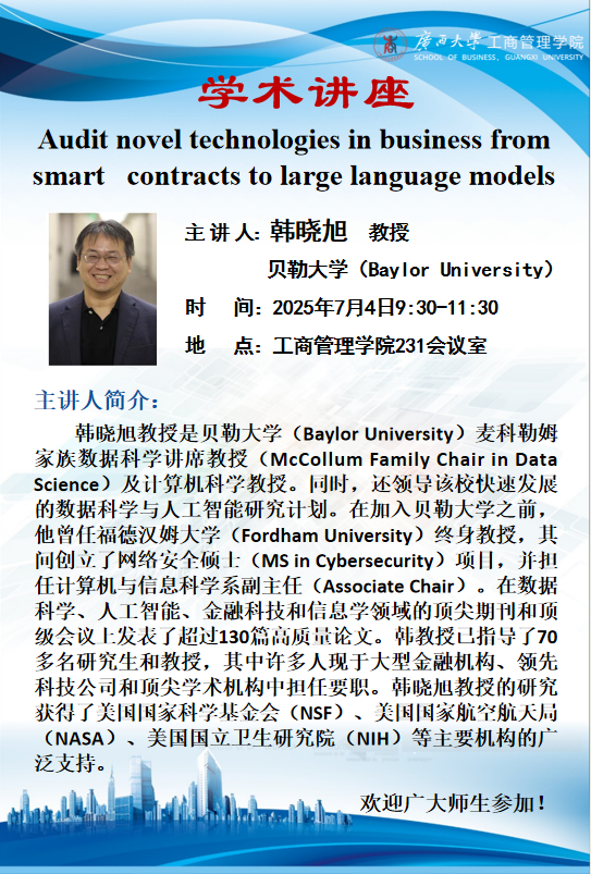 学术讲座|Audit novel technologies in business from smart contracts to large language models
