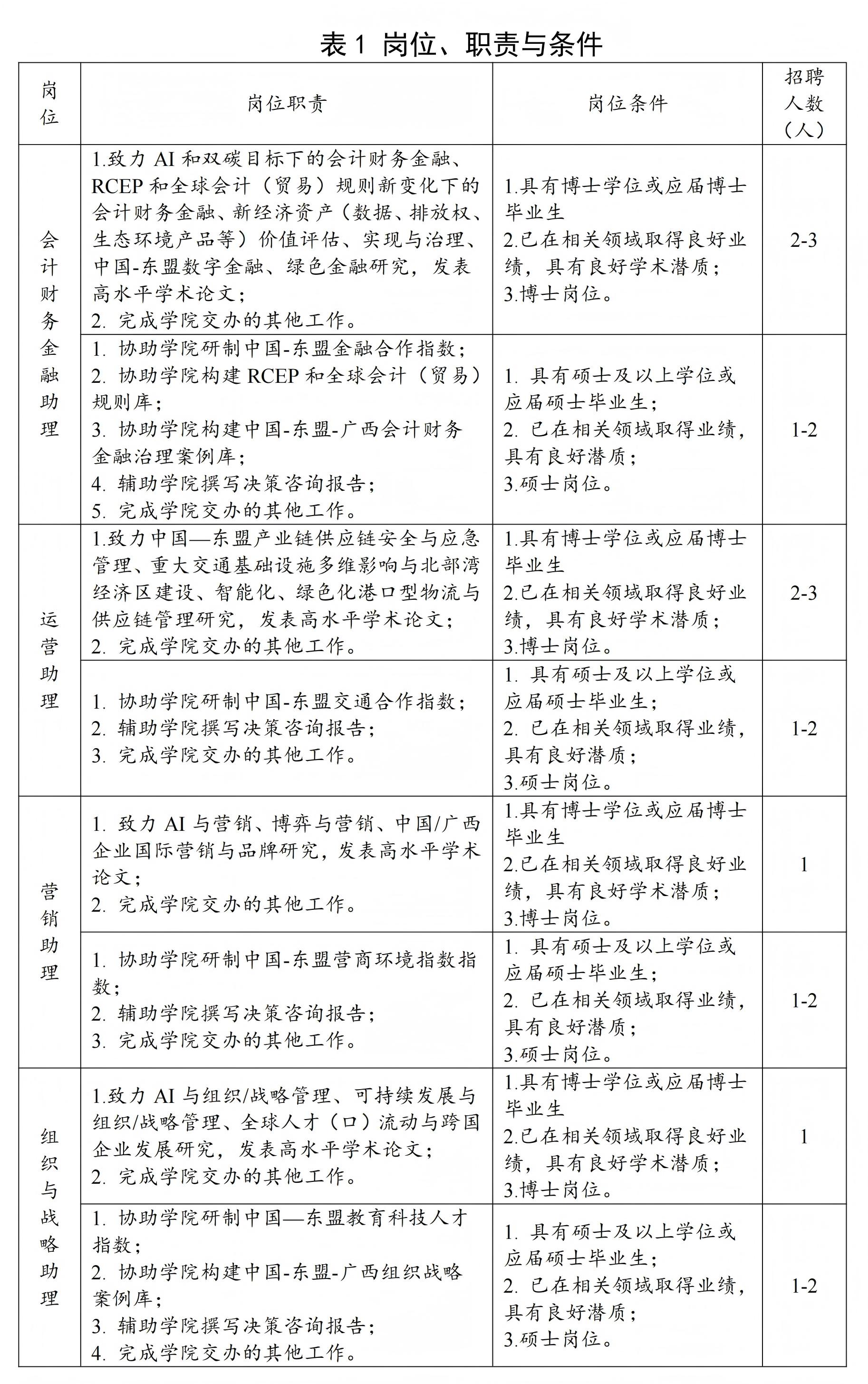 (五)符合相应岗位的招聘条件,具体见表1。