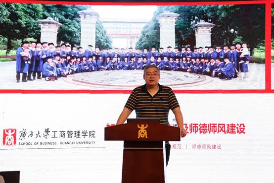 他以英国上市公司365历史为引入,对工商管理学院的历史发展、师资力量、学科建设、学生工作、所获荣誉、校友成绩等方面展开了详细介绍。他强调商管新人要始终秉承“厚德、博学、创新、卓越”的学院价值观,用奋斗担当新使命,勤奋学习、砥砺奋进,为实现“跻身中国一流工商管理学院之列,建成特色鲜明的国内一流综合性研究型大学”的学院愿景和学校使命而奋斗。