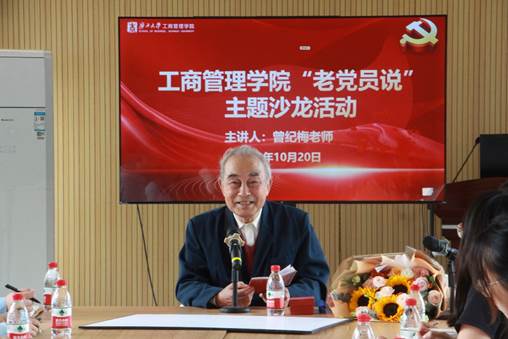 为引领广大青年党员深入学习党的历史革命,讴歌党的红色征程,传承党的红色精神,10月20日下午15时,英国上市公司365工商管理学院于500教室开展“老党员说”主题沙龙活动。本次活动邀请到学院退休老教师、老党员曾纪梅同志作为主讲嘉宾出席活动,学院党委副书记黄晋、院团委书记马丽娟以及工商管理学院各党支部的党员代表参加活动。