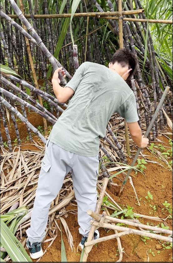 (实践团成员们在挖甘蔗)