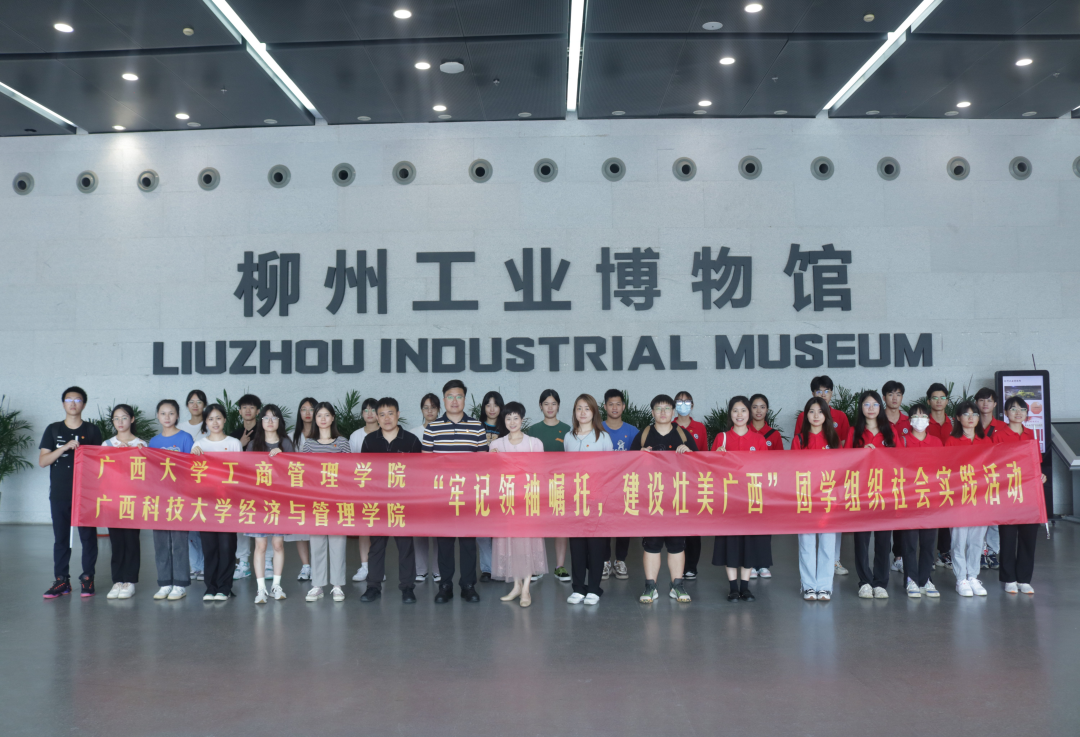 活动结束后,实践团与广西科技大学经济与管理学院代表团共同进入柳州市工业博物馆进行参观学习,了解柳州工业发展史。博物馆分四个不同时代,展现了柳州工业从无到有,从有到强的发展历程。用一个个工业展品展示柳州工业实力,一个个鲜活的故事呈现柳州工人的风采,他们的大国工匠精神激励着一代又一代柳州人进取努力。