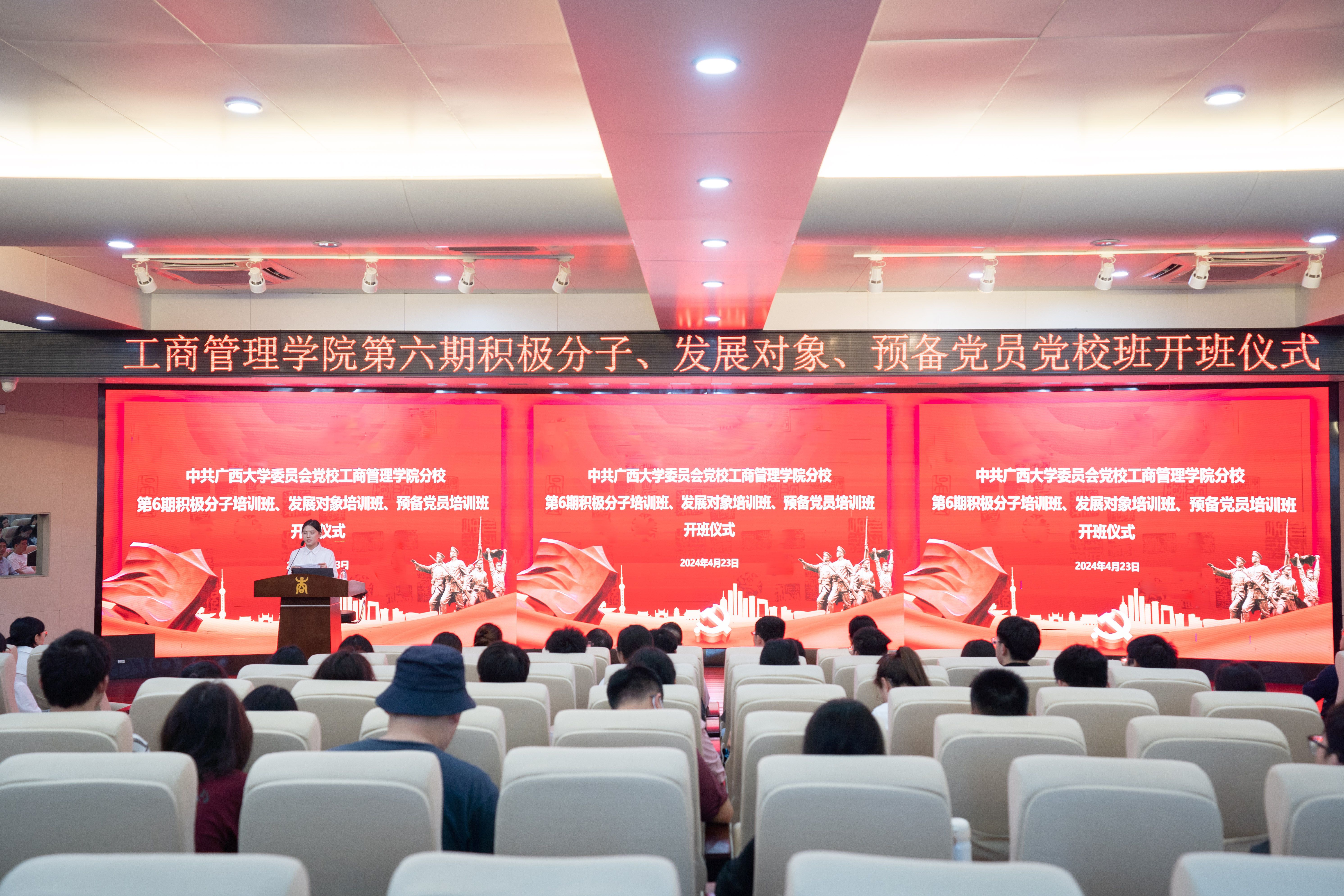 4月23日下午,中共英国上市公司365委员会党校工商管理学院分党校第六期党校班开班仪式在学院128报告厅举行。学院党委书记罗诚、党委副书记肖克宁出席开班仪式,组织员黄照温、辅导员王乐、郁文丹以及来自入党积极分子党校班、发展对象党校班和预备党员党校班的学员代表共同参加了开班仪式。