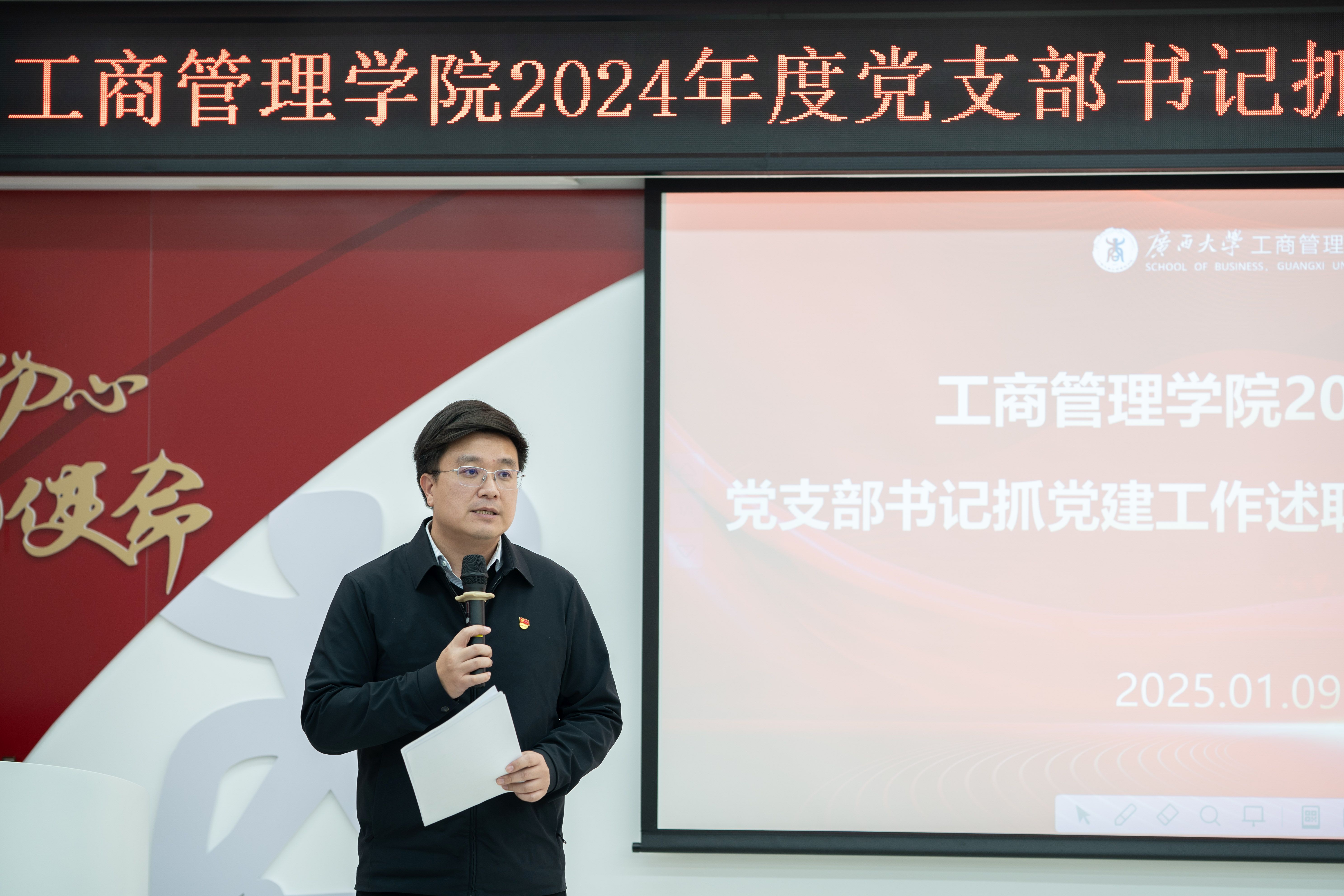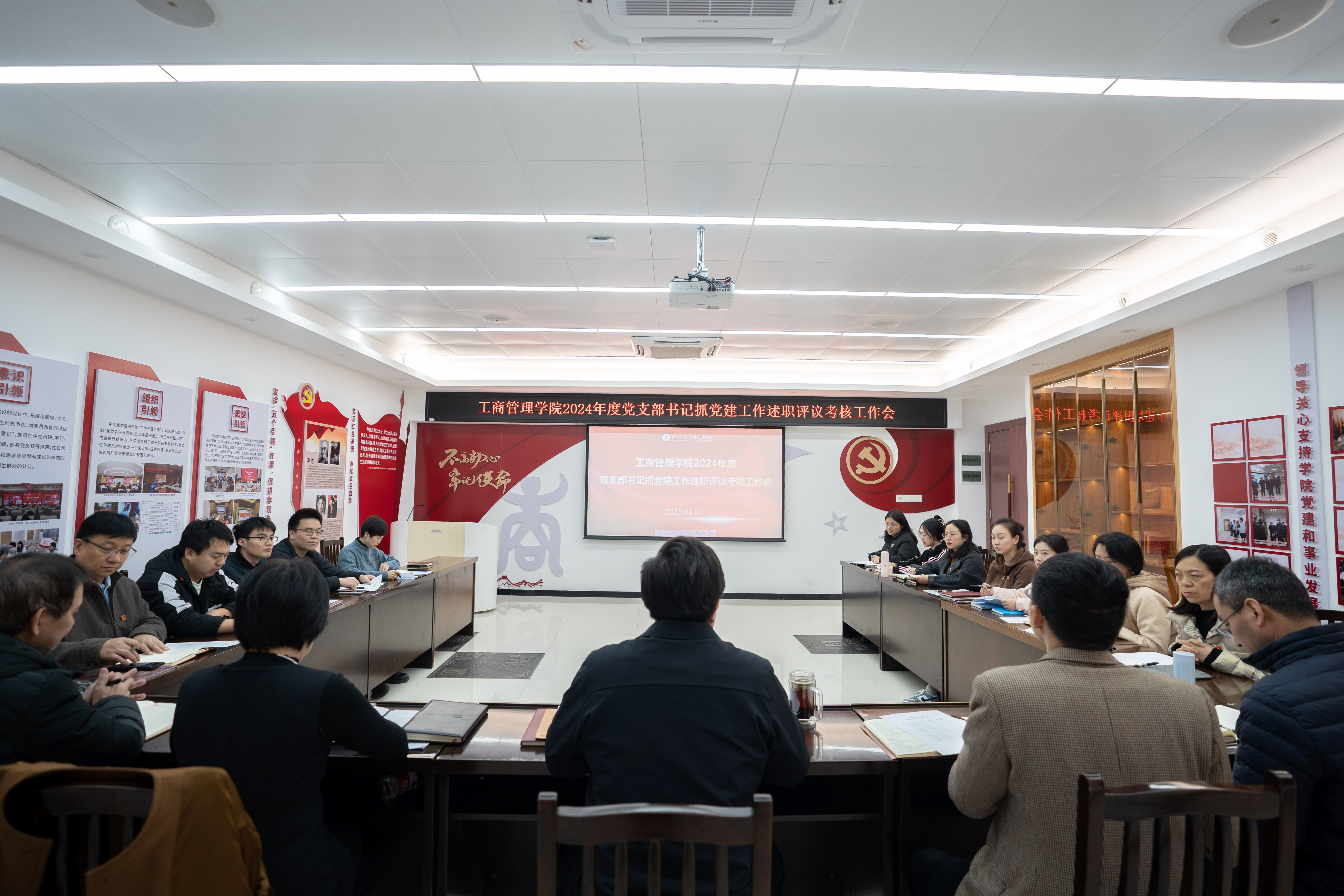 根据学校党委有关工作要求,1月9日下午,工商管理学院党委在学院党员活动室召开2024年度党支部书记抓党建工作述职评议考核工作会。学院党委书记黄晋、副书记肖克宁出席会议,各党支部书记及师生党员代表参加会议。