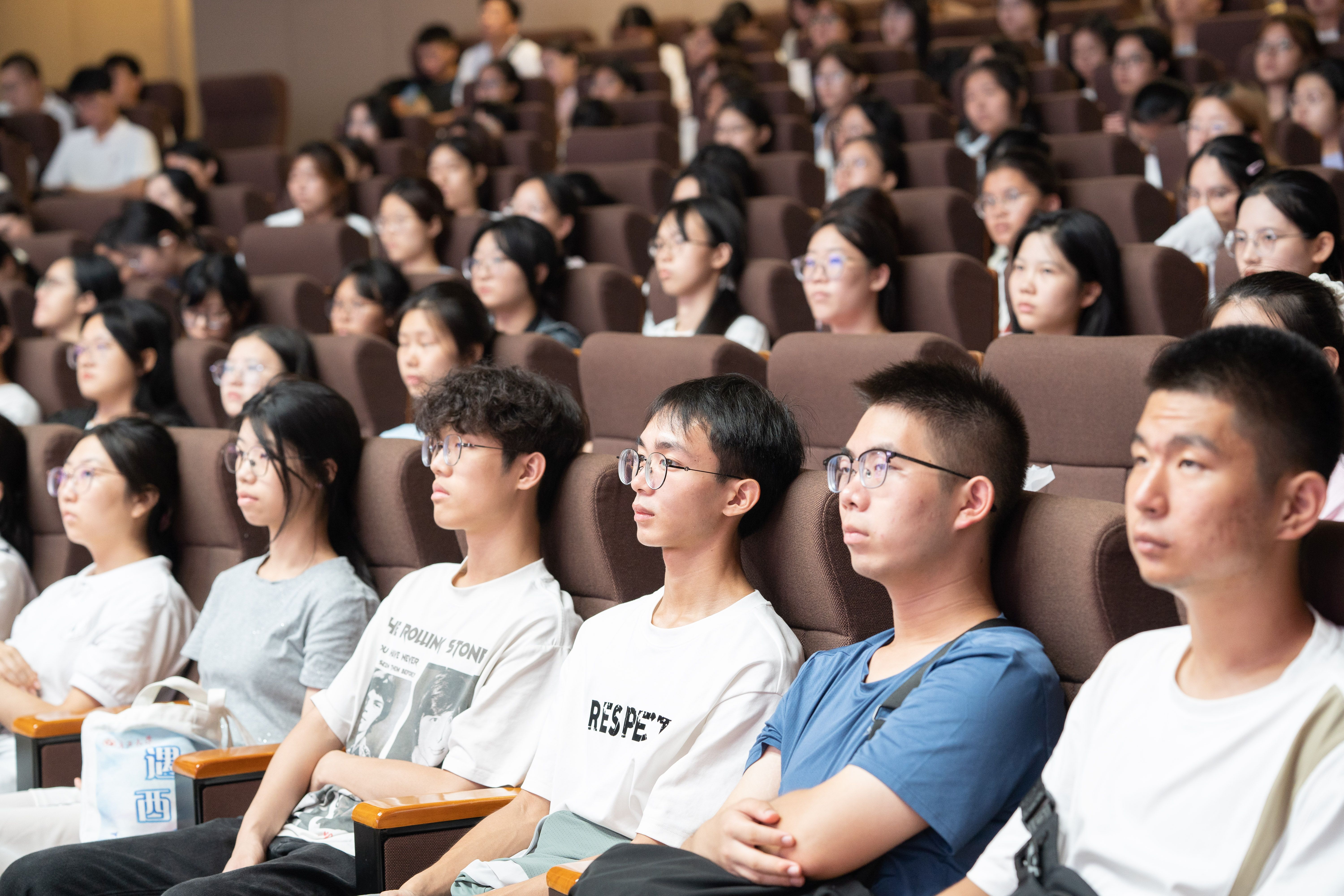 为激发学院2025级新生对党的信仰和追求,引导青年学生听党话、跟党走,9月17日下午,我院党委在学校大学生活动中心小剧场举办2025级新生入党启发教育专题党课。专题党课由学院党委书记黄晋主讲,党委副书记肖克宁、学工组辅导员管雅娣与全体新生一同参与学习。