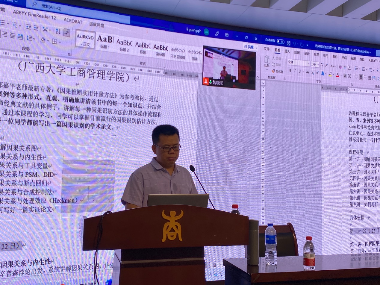 9月22日至25日,安徽财经大学李光勤副教授应我院邀请,以“如何写好一篇实证文章”为主题,以因果推断等实证方法为引,在工商管理学院128报告厅为我院师生带来了一场不一样的《高级计量经济学》课堂。