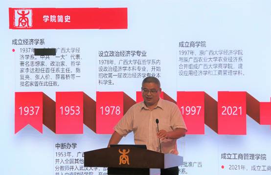 为积极响应国家和学校的号召,呼唤诚信学风永驻校园,使广大师生积极参与学术诚信教育活动,9月15日下午,工商管理学院开展了新生欢迎仪式暨“开学第一课”活动。此次活动由学院党委副书记黄晋主持,出席活动的有学院党委书记罗诚、院长朱帮助、副院长刘民坤、副院长廖东红、研究生管理中心常务副主任叶映、团委书记马丽娟、教师代表胡明明,团委、学工组、研究生管理中心的老师以及学院2022级研究生新同学。