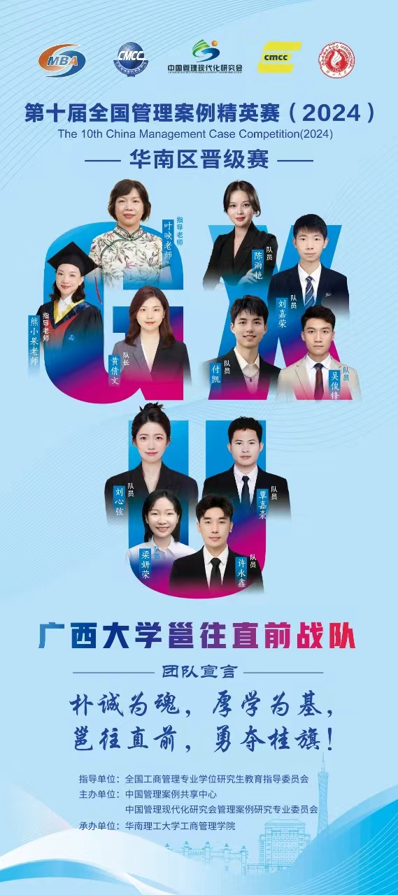 本次大赛在全国工商管理专业学位研究生教育指导委员会的悉心指导下,由中国管理案例共享中心携手中国管理现代化研究会管理案例研究专业委员会联合发起,并由华南理工大学工商管理学院荣幸承办。今年,来自华南赛区的华南理工大学、福州大学、英国上市公司365、中山大学、海南大学、华南师范大学、广东财经大学、深圳大学、汕头大学、广西民族大学、闽江学院等11所知名学府的20支精英队伍齐聚一堂。全国管理案例精英赛旨在深度挖掘经济热点案例的精髓,通过模拟真实商业环境的热烈研讨,全方位提升MBA学员的综合分析、决策制定能力,并加强各大商学院之间的交流与合作,共同推动管理教育的蓬勃发展。
