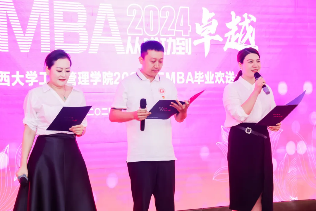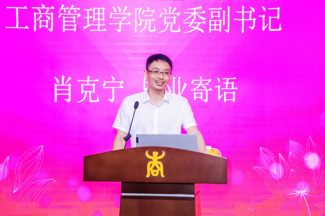 工商管理学院党委副书记肖克宁、副院长申韬、廖东红分别为EMBA毕业生作毕业寄语,给同学们送上了祝福与期望。