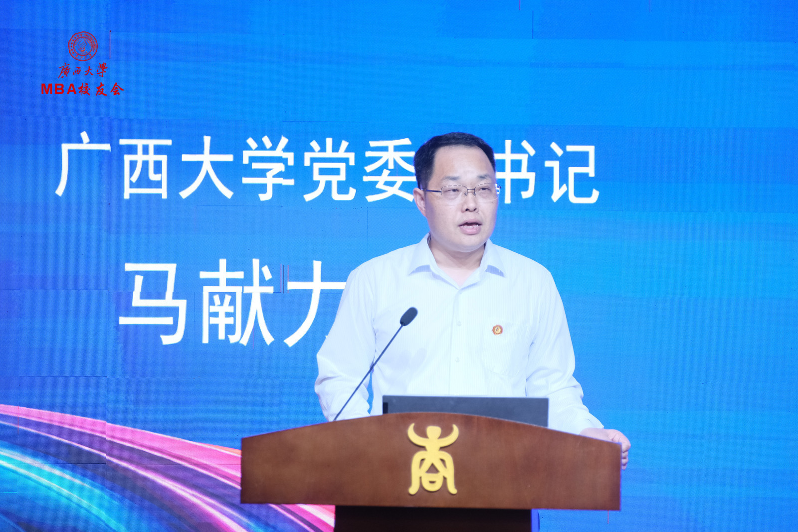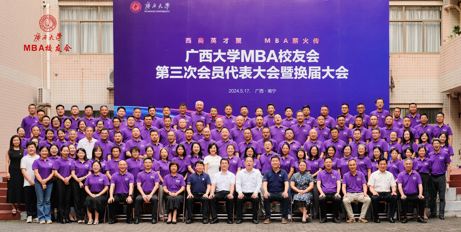 区直校友会代表甘向群、MBA校友代表张程在大会上发言。广州、深圳、区直、南宁市、柳州、桂林、玉林、梧州、贺州、贵港、百色、崇左、SMBA等校友会,EMBA同学会,校友足球协会、乒乓球协会、排球协会等校友代表,以及香港浸会大学MBA、中山大学MBA、暨南大学MBA、深圳大学MBA等嘉宾代表皆到场祝贺。大会还收到了各地兄弟校友会、校友发来的祝贺视频和贺信贺词。最后,换届大会在嘹亮的校歌声中圆满结束。