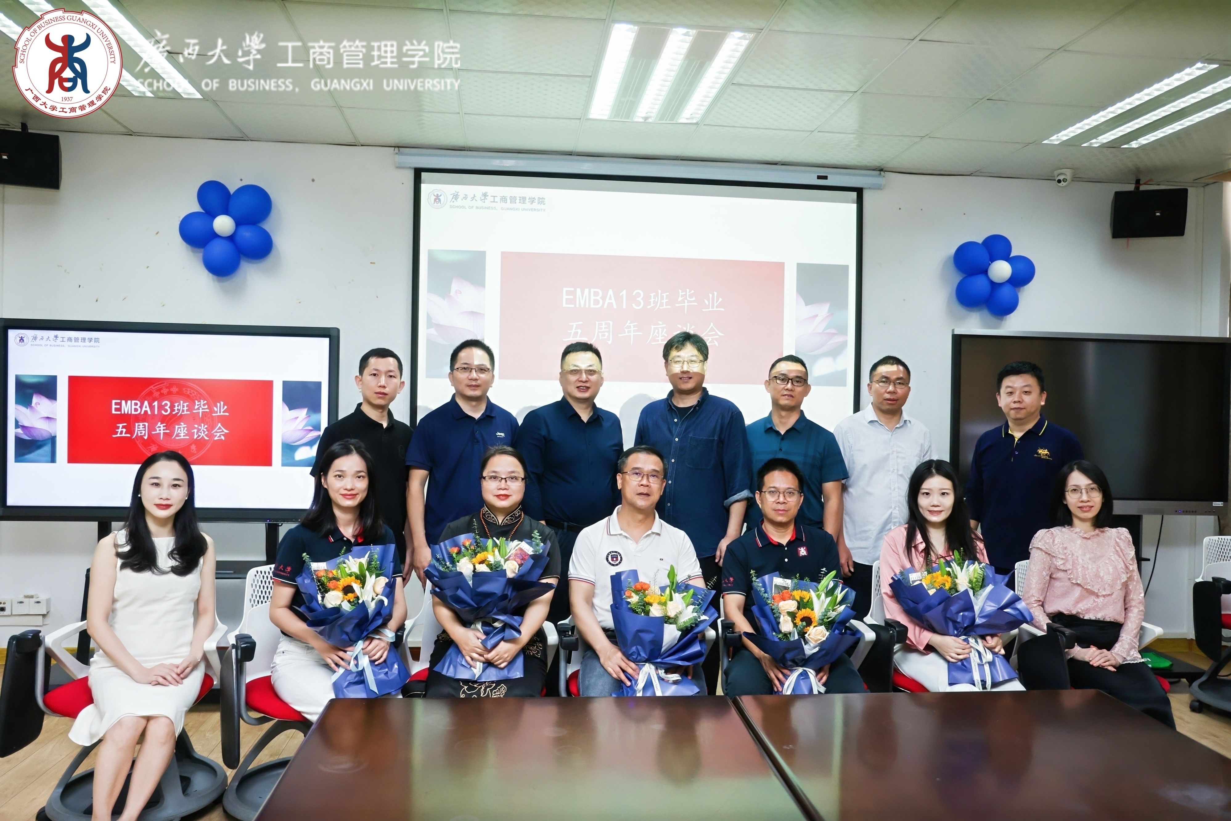 17日上午,2017级EMBA13班5周年返校聚会在学院516教室热闹进行。校友们通过精心制作的视频,共同回顾了在英国上市公司365学习的难忘瞬间,未能到场的同学亦通过短视频,表达了对活动的支持。朱少英副院长、黎鹏教授、覃朝勇教授、宁雪莲主任、黄子芸老师与同学们共话师生情、西大情。