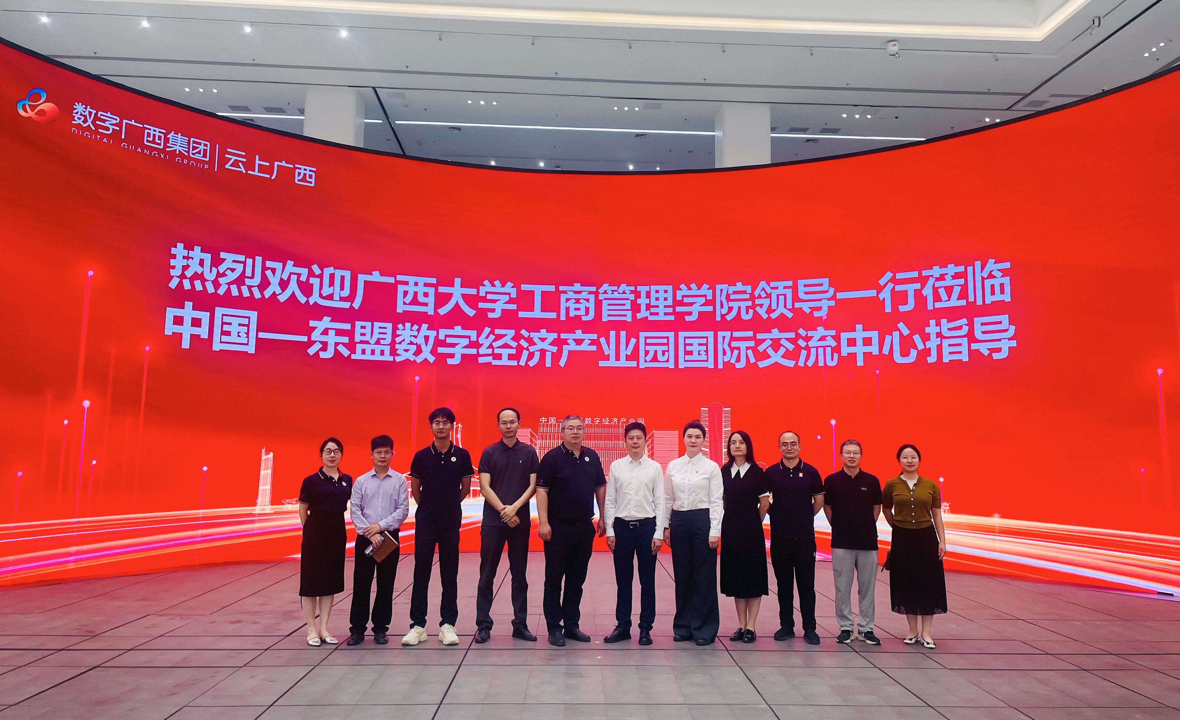 在中国-东盟数字经济产业园,调研组受到广西数广全网融合科技有限公司副总经理周艳(2022级EMBA校友)及云上广西网络科技有限公司董事长刘学(2023级MBA学生)等的热情接待。座谈中,双方围绕重点研发项目联合申报、新能源算力中心、东盟舆情智库建设及数字创新实训基地共建等展开探讨。朱帮助表示,学院将发挥学科优势,助力企业数字化转型,打造服务中国-东盟数字经济发展的产学研标杆,推动“AI+行业”战略深度融合。