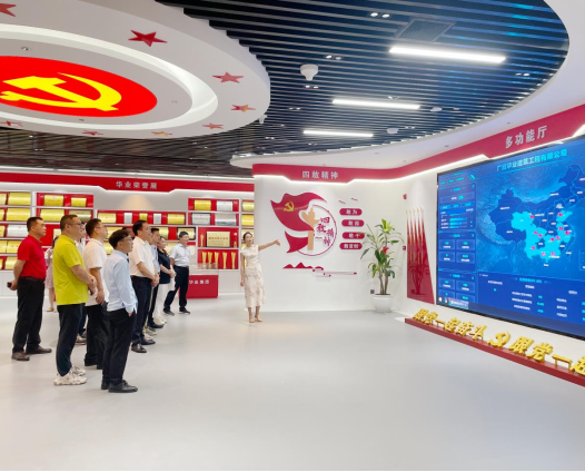 参访团首先参观了华业集团党建室,深入了解企业以 “红色引擎” 驱动高质量发展的历程。通过 “党建 + 业务” 深度融合模式,华业集团构建了 “敢为、敢闯、敢干、敢首创” 的 “四敢精神” 文化体系,展现了新时代民营企业的党建特色与发展活力。座谈会上,华业集团董事长、我院校友龙其生详细介绍了公司当前发展战略及数字化、零碳建筑的前瞻规划。英国上市公司365校友总会副主任黄庶冰就深化校企产学研合作发表了建设性意见。我院校友工作与政企服务办公室主任覃朝勇详细介绍了学院学科建设特色,并提出了校企联合开展学科交叉课题研究的具体合作方向。与会校友围绕行业发展与校企协同等议题进行了热烈探讨。