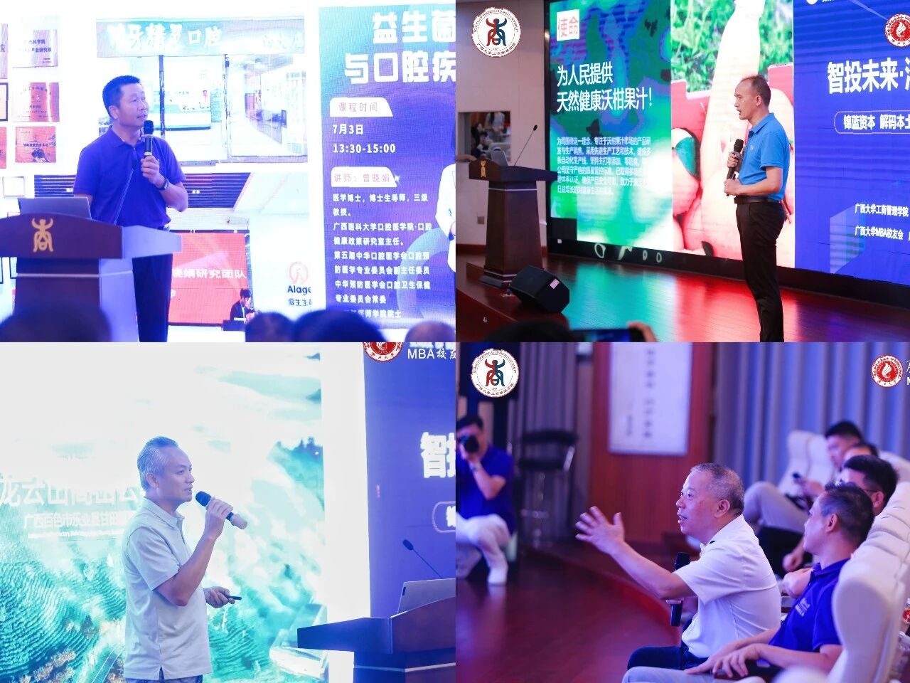 论坛特设校友企业路演环节,聚焦“广西之光”的实践探索。广西爱生多维长寿口腔科技有限公司、广西龙云山茶叶集团有限公司、广西冰客果汁有限公司三家校友企业,分别就口腔健康科技、有机茶产业升级、沃柑深加工等项目进行了精彩展示。龙晓荣先生从产业趋势与投资逻辑出发,对各个项目进行了专业点评,并提出了具前瞻性的发展建议。