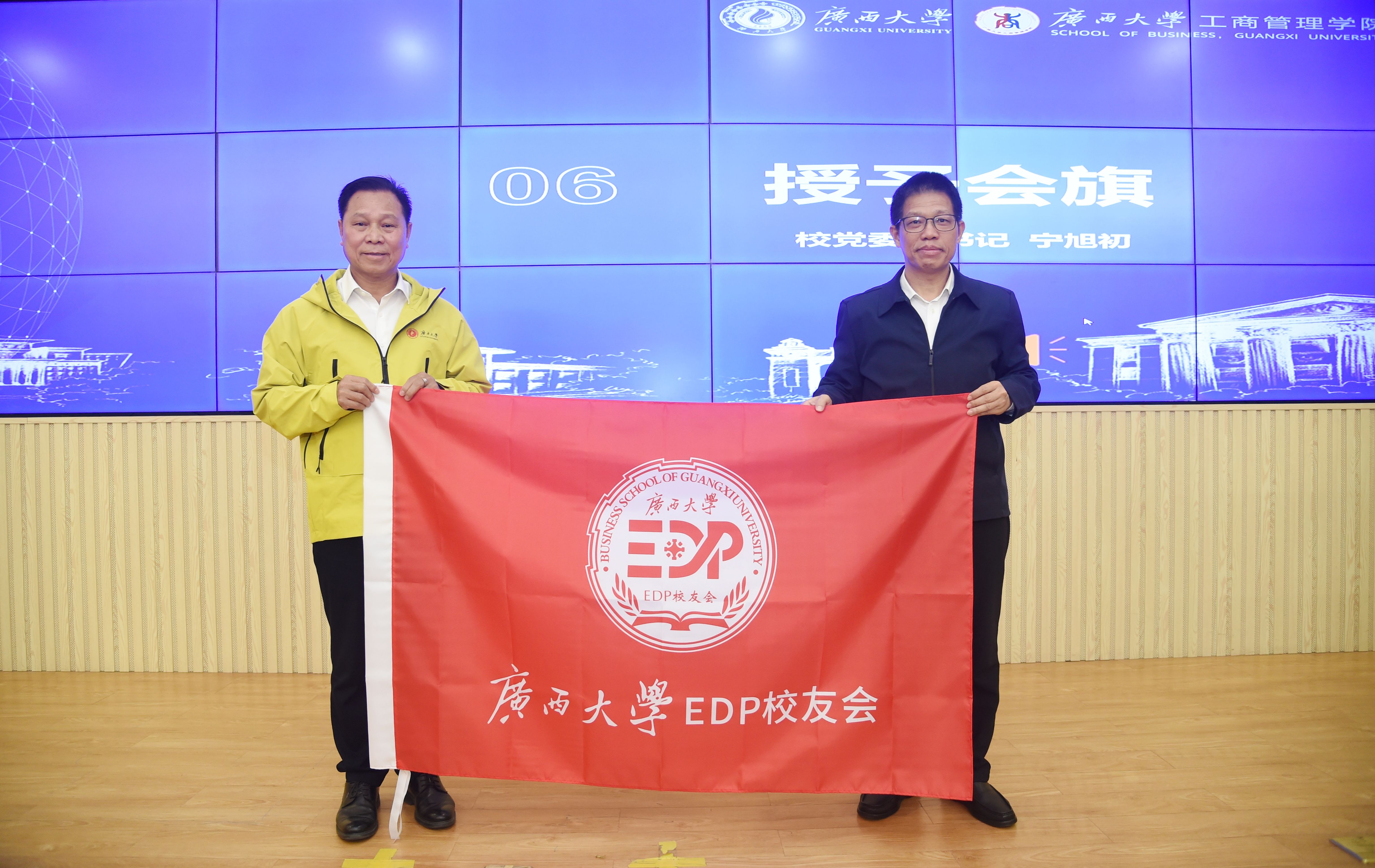 校党委副书记宁旭初为EDP 校友会授予会旗